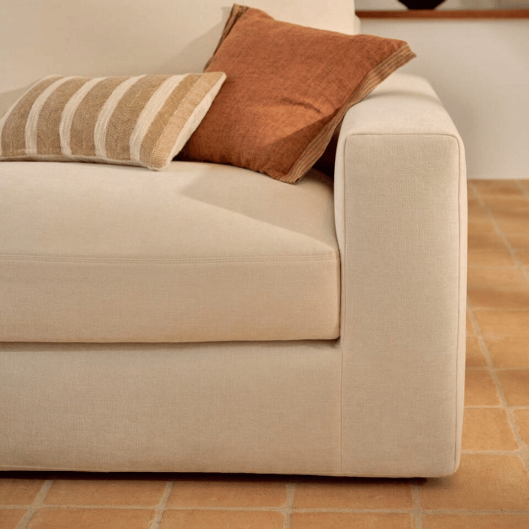 Meet Alea, the modular sofa designed to fit the way you live. This collection combines clean design with everyday practicality, making it an ideal choice for modern spaces. Thanks to its modular design, Alea adapts effortlessly to different room layouts, offering maximum functionality without compromising style. Upholstered in small-structure chenille, the fabric delivers a soft velvety touch while offering excellent resistance to light and abrasion. The fully removable covers, secured with a smart Velcro system, are easy to maintain and machine-washable on a delicate cycle. Comfort is at the heart of Alea. The medium-firm seat features foam topped with a fibre layer for a supportive yet cloud-like feel. While the backrest cushions are filled with high-elasticity conjugated siliconised fibre that adapts perfectly to your body.