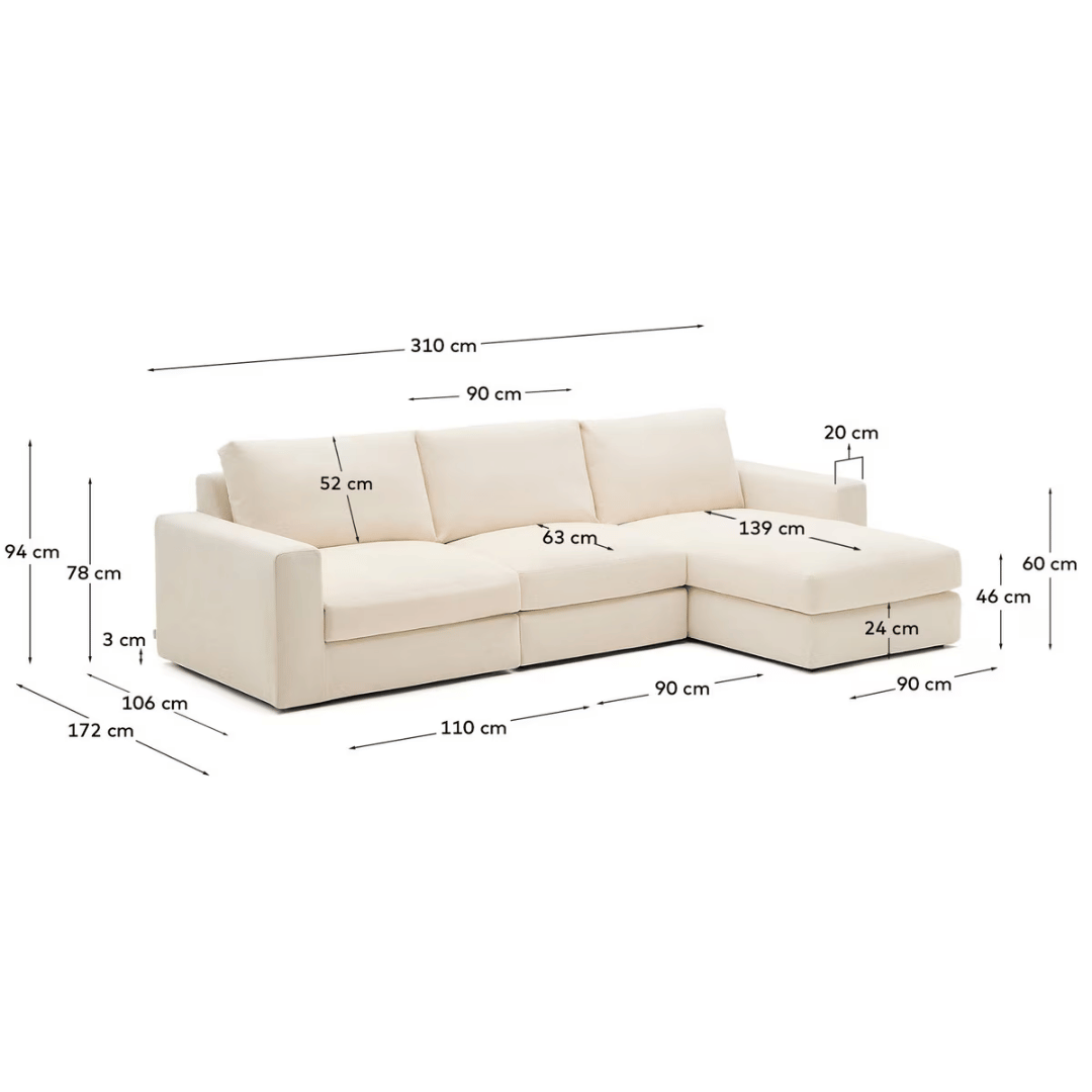 Alea 4 Seater Sofa | Right Hand Chaise | Ecru Beige