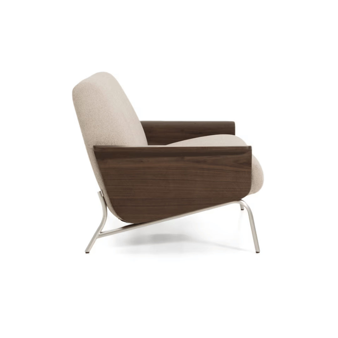 The Amsen collection stands out with its sleek, contemporary look inspired by mid-century modern design. Blending wooden arms, soft chenille upholstery, and brushed steel legs for a perfectly balanced, timeless feel. The elegant timber arms and brushed stainless-steel legs, offer both style and durability. Designed for everyday comfort, it has a medium-firm seat thanks to supportive webbing and springs combined with high-density foam layers. Upholstered in recycled polyester chenille with a water-repellent finish. So you can relax knowing it’s designed for everyday comfort and built to last.