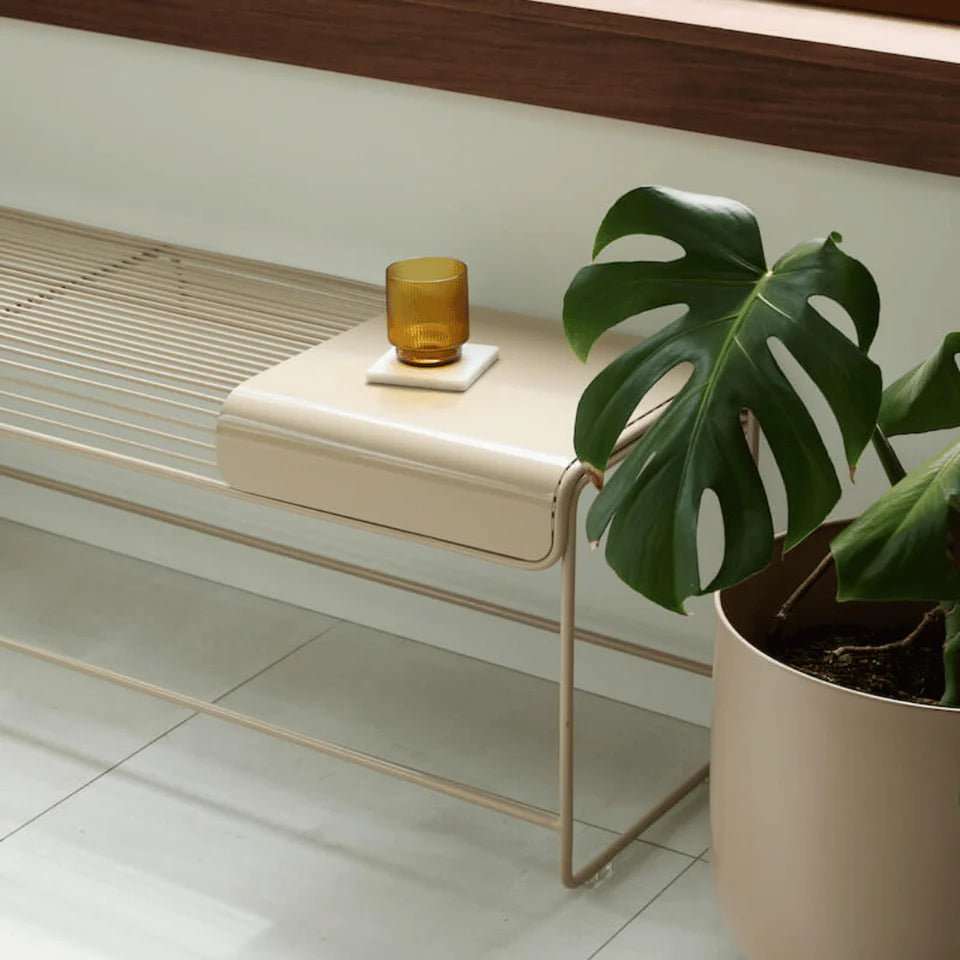 The design features a moveable solid metal plate creates even more options. Position the plate on top to create a stable place for cups and glasses, or place it on the bottom rungs to create a hold for shoes, books, and plants. For a sleeker more streamlined look, remove it completely.