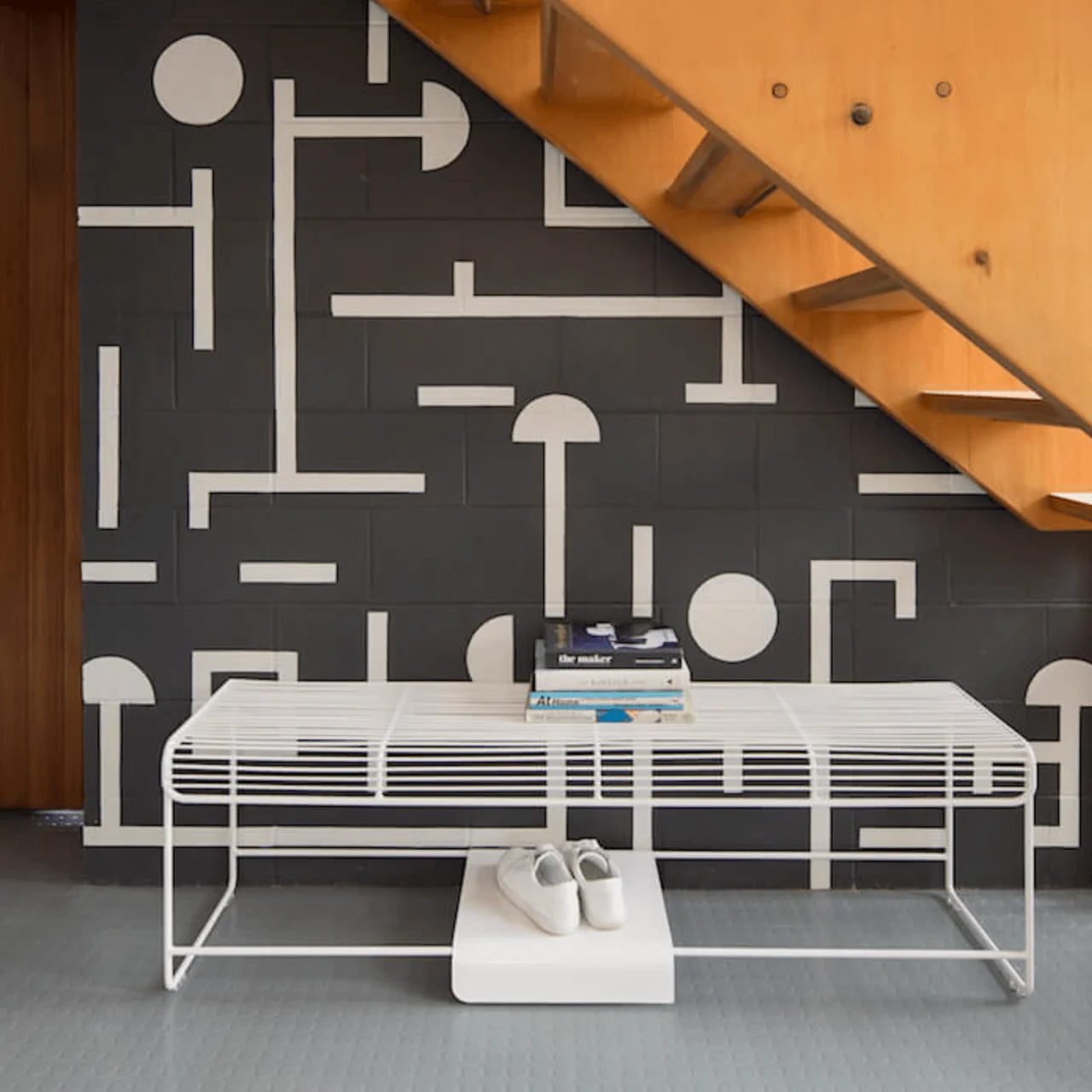 The design features a moveable solid metal plate creates even more options. Position the plate on top to create a stable place for cups and glasses, or place it on the bottom rungs to create a hold for shoes, books, and plants. For a sleeker more streamlined look, remove it completely.