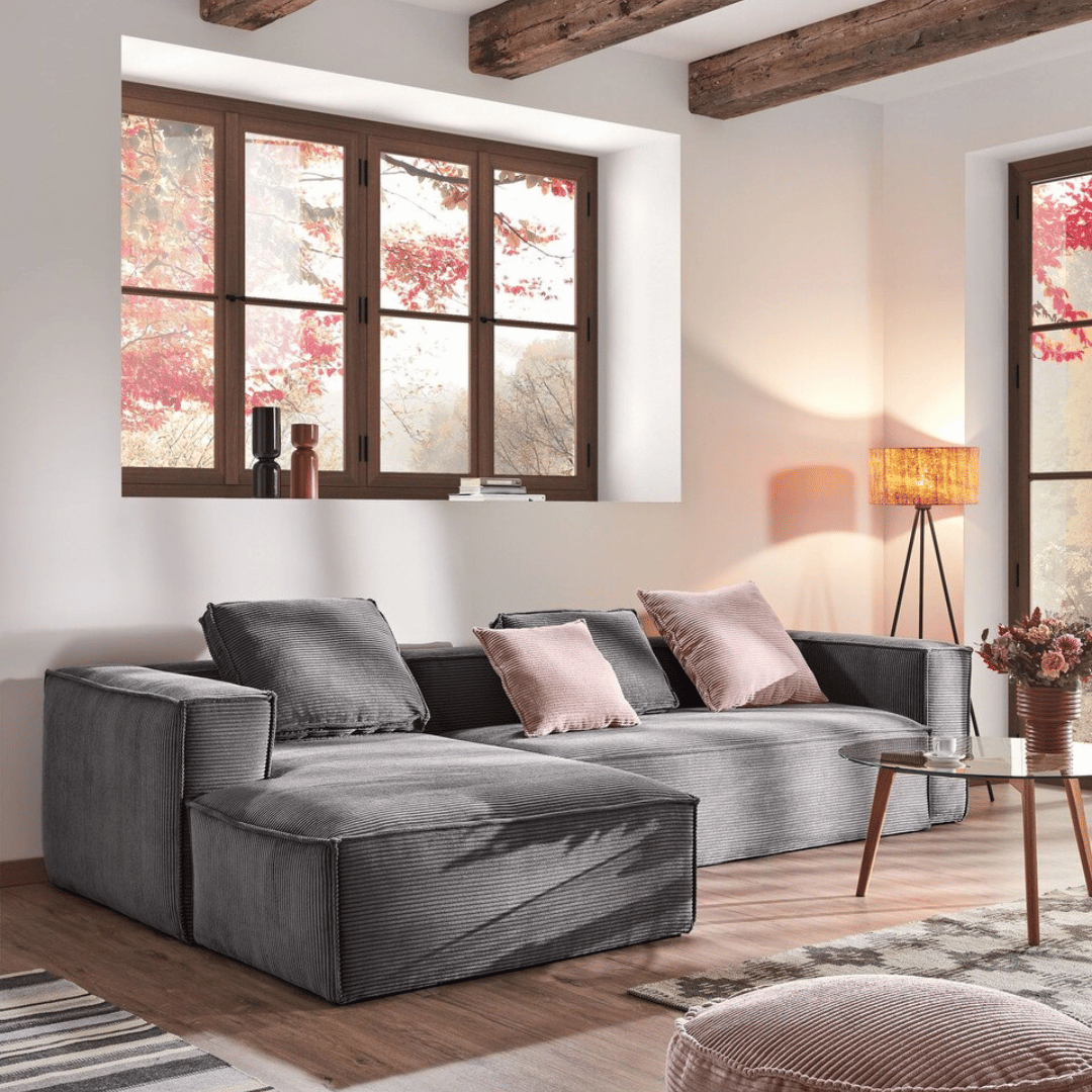 Blok 4 Seater Chaise Sofa | Grey Corduroy