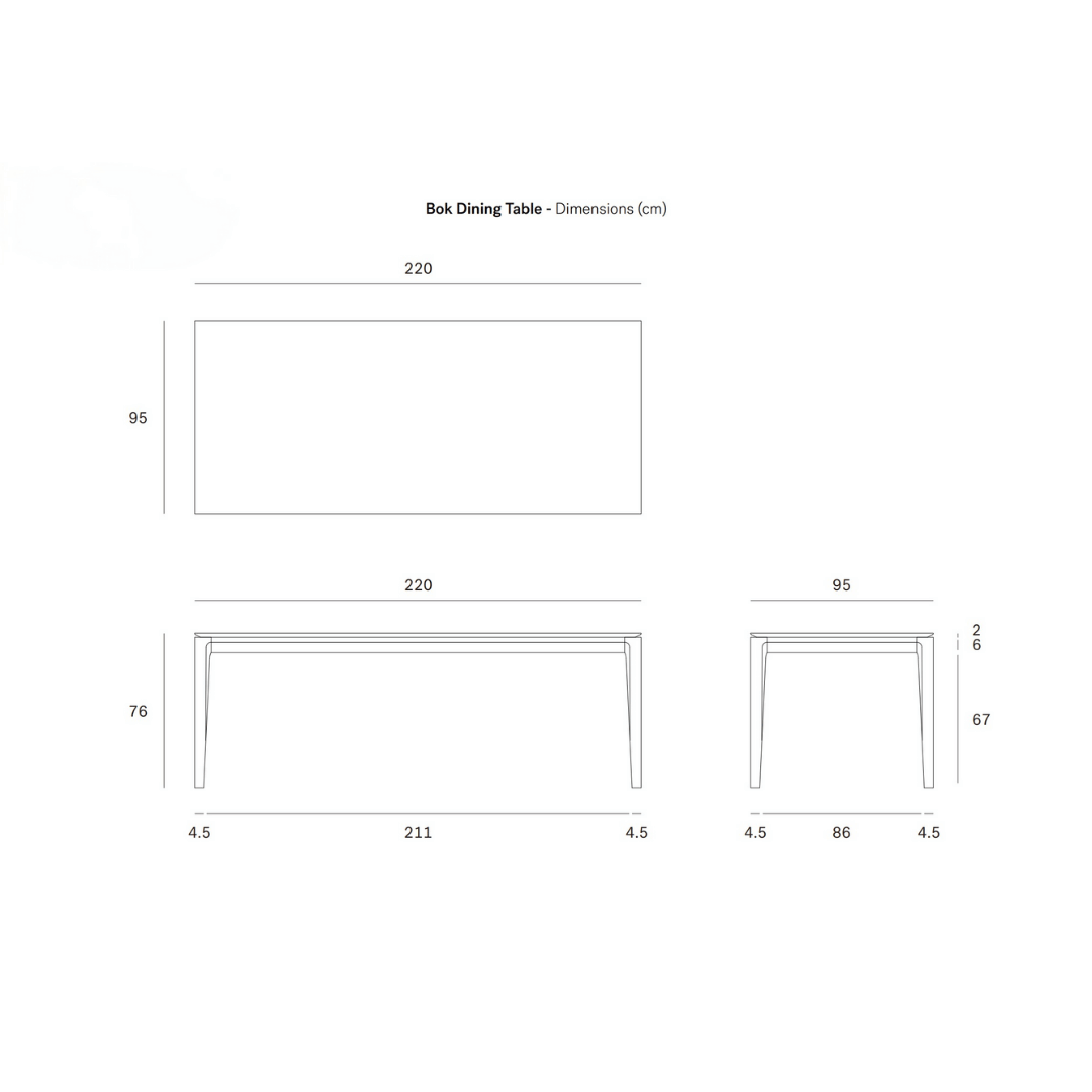 Radiating simplicity and refinement, the Bok Dining Table will complement any modern or Scandinavian space. The rounded-off edges and simple form make this a timeless design. The attention to detail is showcased through the tapered legs, smooth lines, and solid build quality. Made from 100% FSC-certified solid Teak timber, the warm varying grains of this timber are a highlight. The Teak is not treated because it contains high levels of natural oils to make it water resistant. For added protection, we recommend applying Osmo TopOil Wax before using the table.