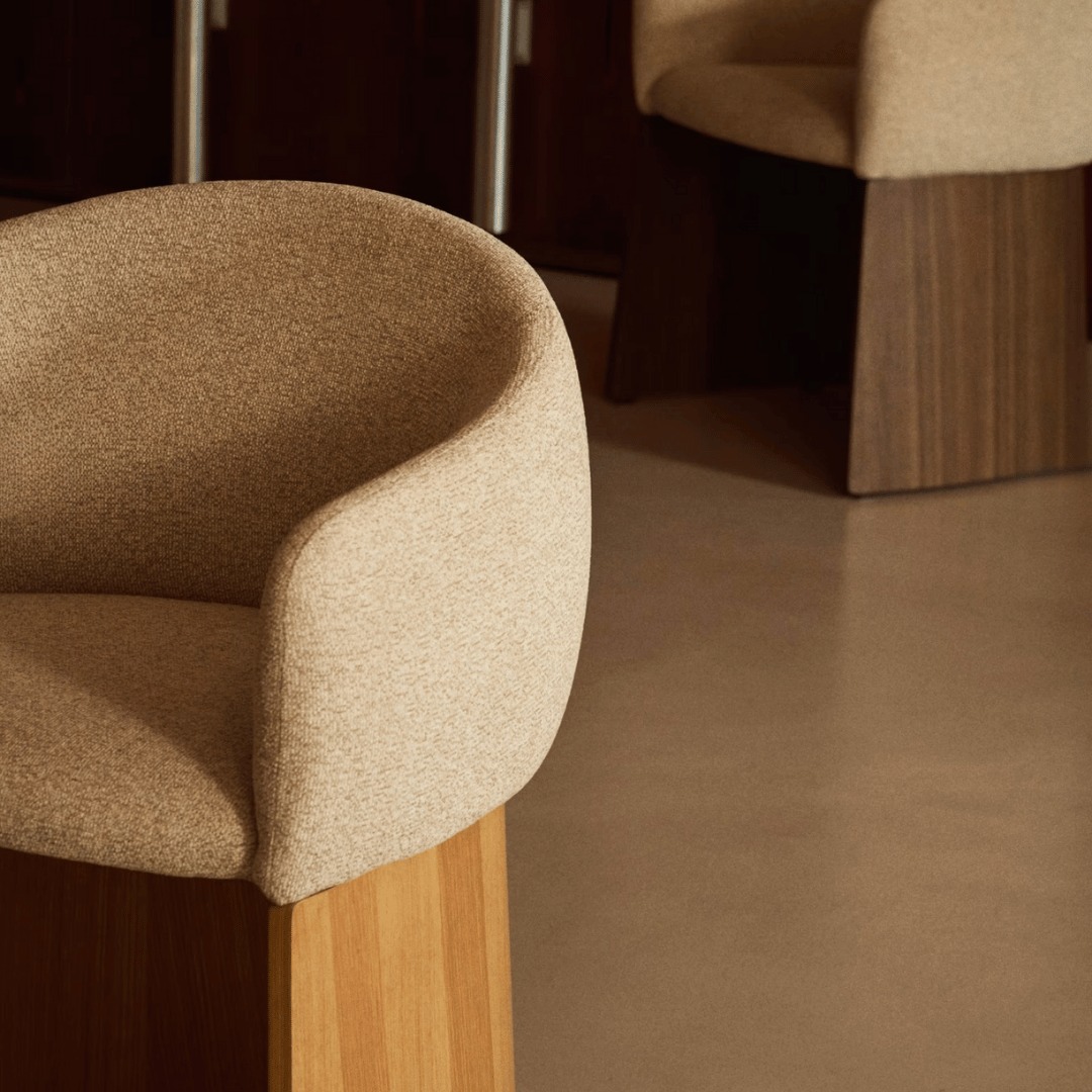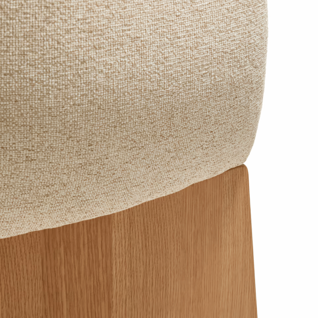Welcome a sculptural design to your dining space with the Bosca dining chair. Generous proportions and an enveloping shape combine to form a balanced and refined silhouette. The wide, welcoming seat rests on a plywood base with a surrounding metal frame. The recycled polyester Oatmeal fabric is complemented by the curved Oak veneer legs, being environmentally conscious yet stunning to look at. The medium-firm seat is perfect for entertainment, whilst felt protectors on the feet help prevent marks and scratches on the floor.