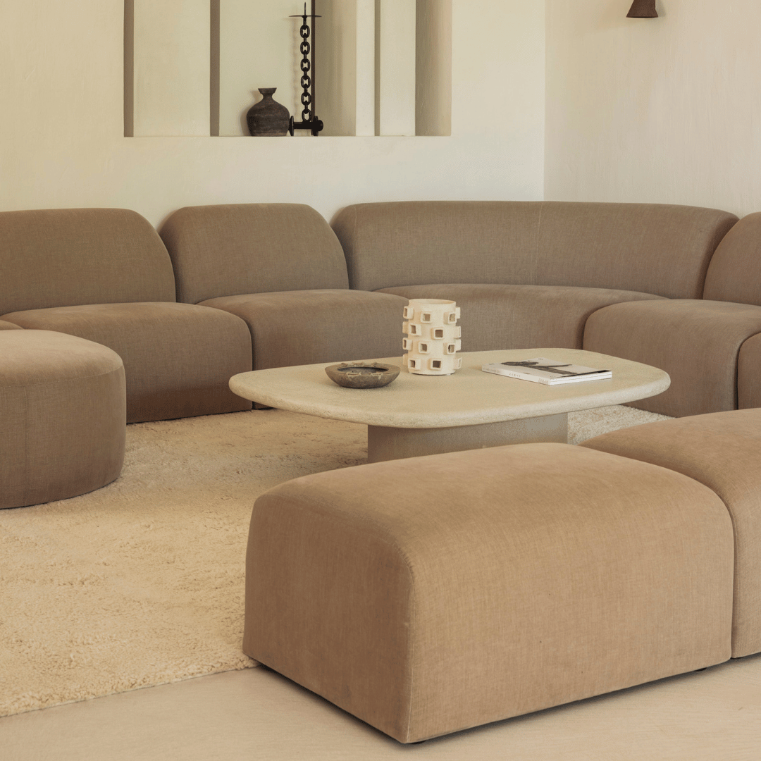 Celebrating simplicity and versatility, the Bulky modular sofa combines to create a truly unique design. Softened by rounded corners and accentuated with subtle stitching details, the Bulky welcomes an understated elegance to any space. Clean lines pair with a luxurious linen-blend upholstery, providing durability and lasting comfort. Whether for a compact space or a large open living area, the modularity of the Bulky can be arranged to suit any home.