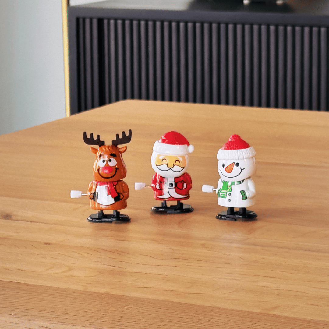 Bring some holiday cheer to your tabletop with these adorable Wind-Up Christmas Racers! Each merry character, Santa, Rudolph, and the Snowman, nods their head as they zoom along. Just wind them up, set your finish line, and let the race begin! Perfect for parties, stocking stuffers, or just a little festive fun at home.