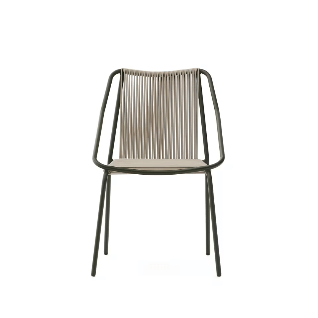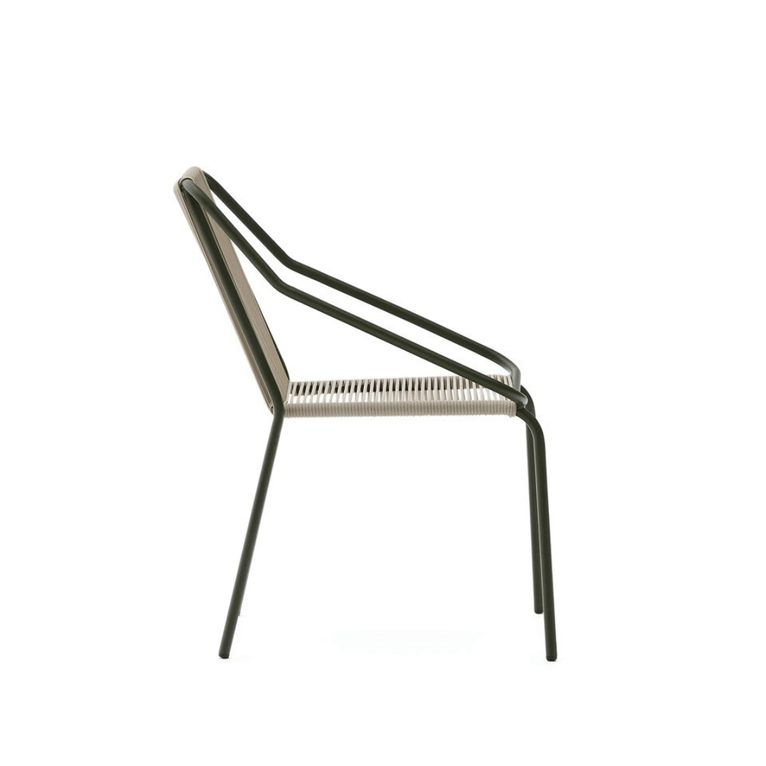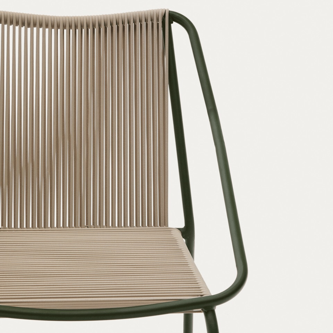 Welcome a minimalist design to your patio area with the Cibi patio dining chair. Made from galvanised steel with a synthetic rope, the Cibi has a superior resistance to abrasion and corrosion - becoming the perfect chair for the Australian elements. The ecru rope is complemented by the dark green steel detailing, combining to create a natural yet industrial aesthetic.