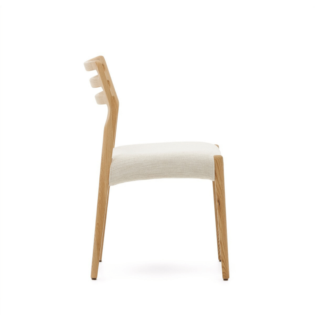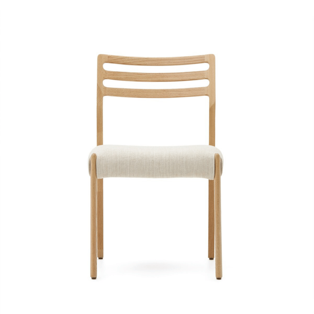 Welcome a timelessly stylish design to your home with the Cudia dining chair. Made from a solid Oak timber, the Cudia will introduce a natural feel with the warmth of the timber and the ivory seat. Elegant slanted legs and the linear back design guarantee stability and exceptional robustness. Plus, the removable seat cover allows for easy care and washing. The Oak timber is coated with a water-based barnish to maintain its colour and shine, which also allows for easy cleaning.