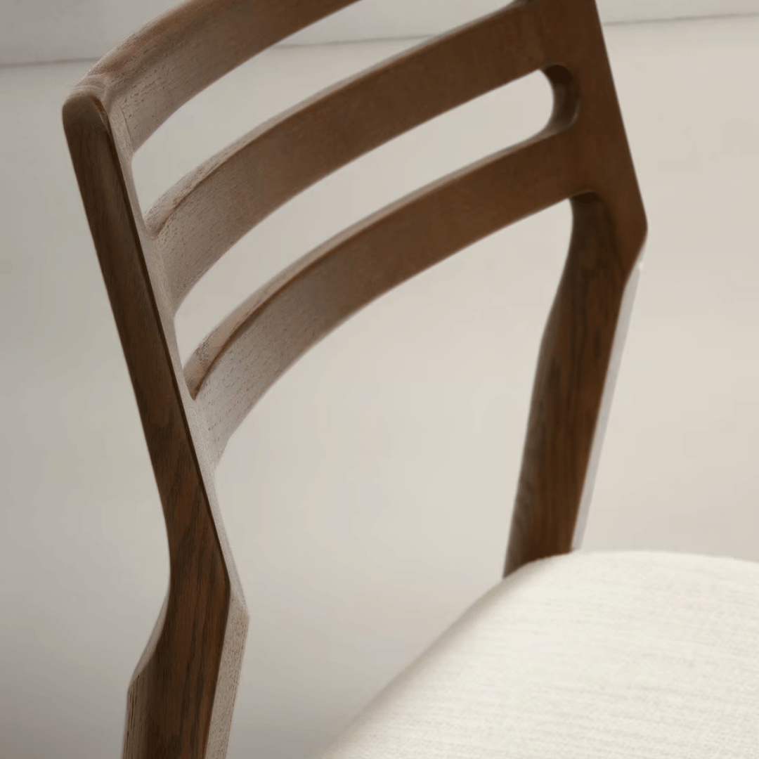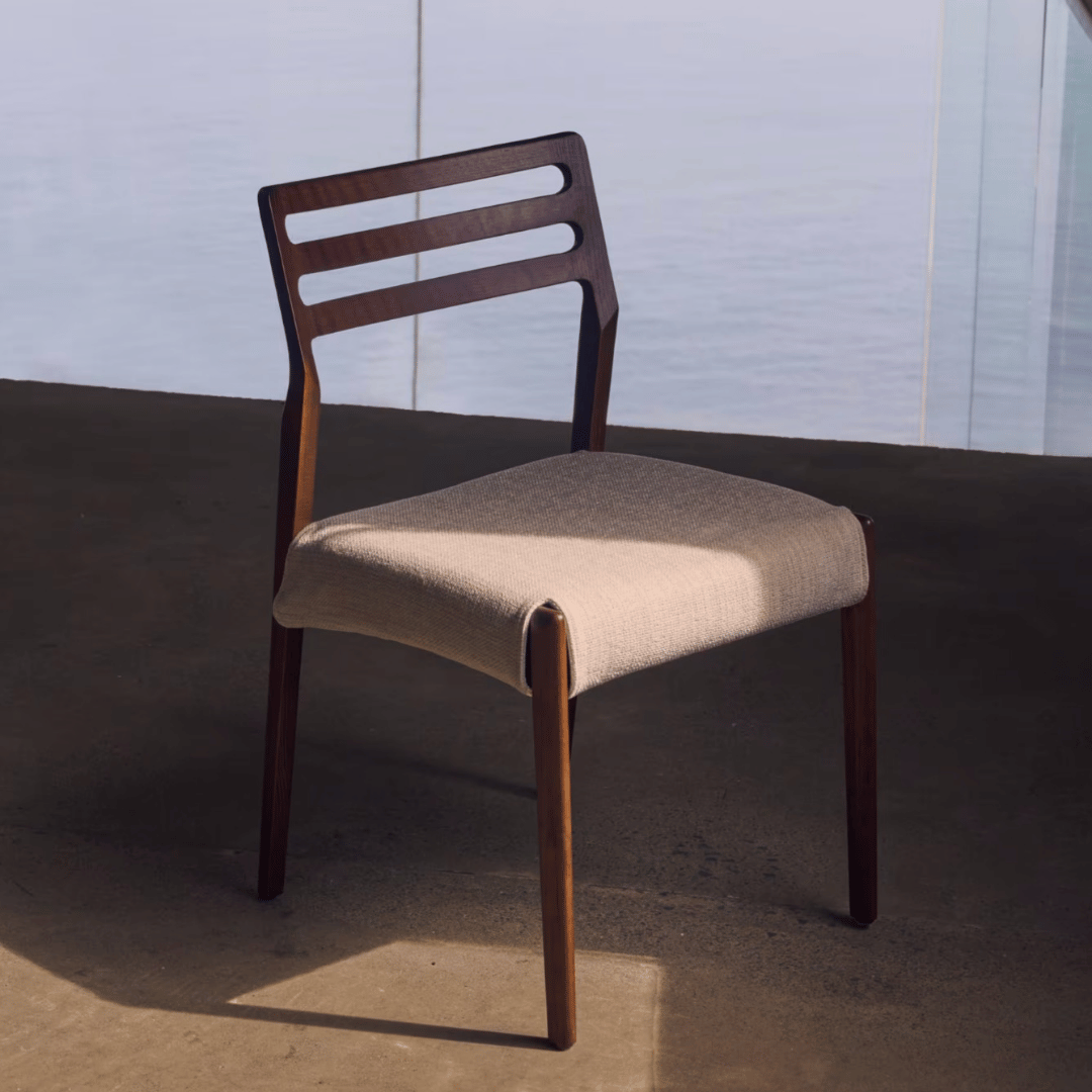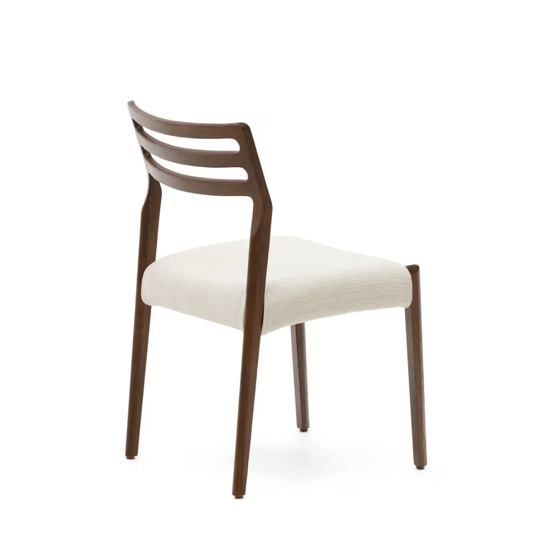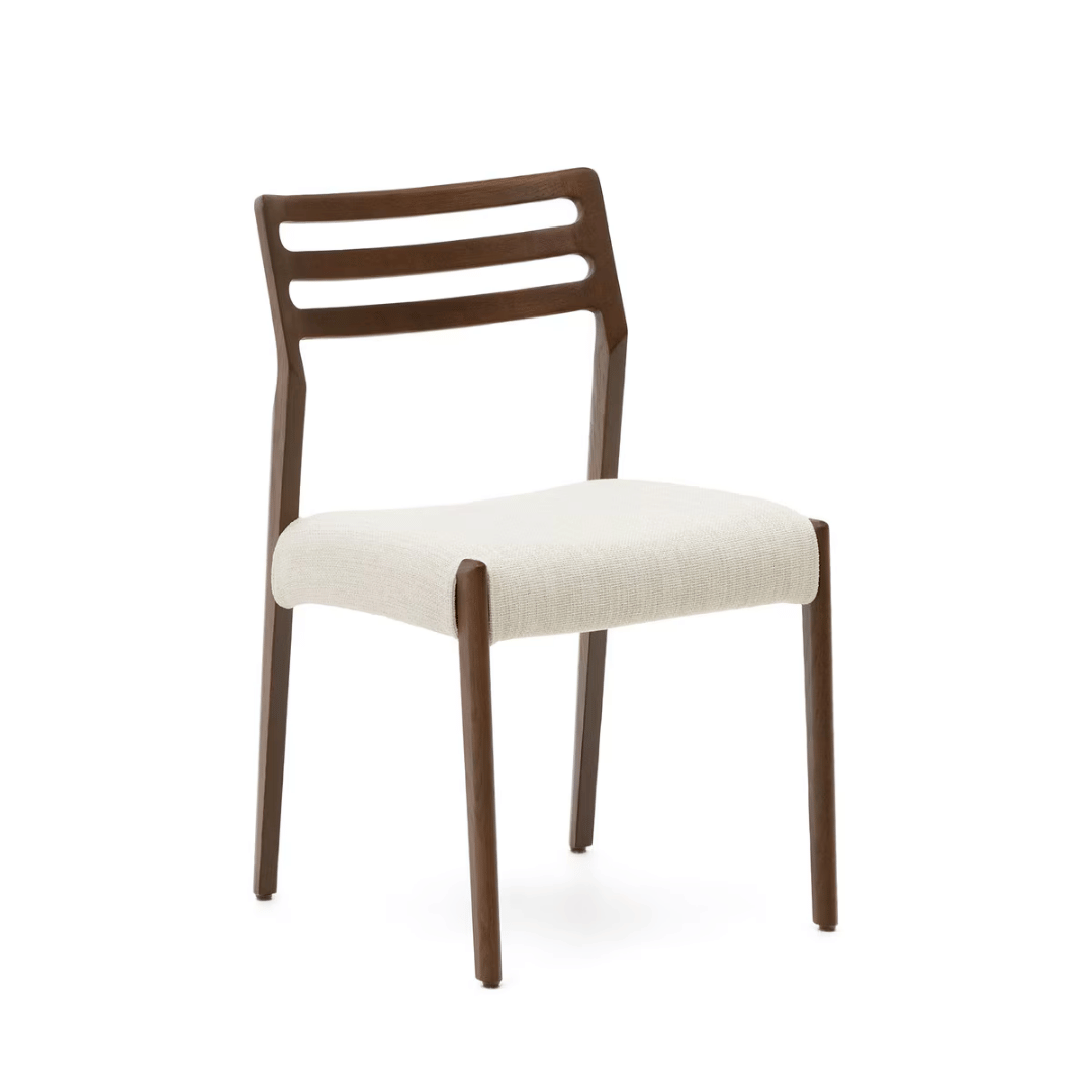 Welcome a timelessly stylish design to your home with the Cudia dining chair. Made from a solid Oak timber and finished in a walnut brown stain, the Cudia will introduce a mid-century feel. Elegant slanted legs and the linear back design guarantee stability and exceptional robustness. Plus, the removable seat cover allows for easy care and washing. The Oak timber is coated with a water-based barnish to maintain its colour and shine, which also allows for easy cleaning.