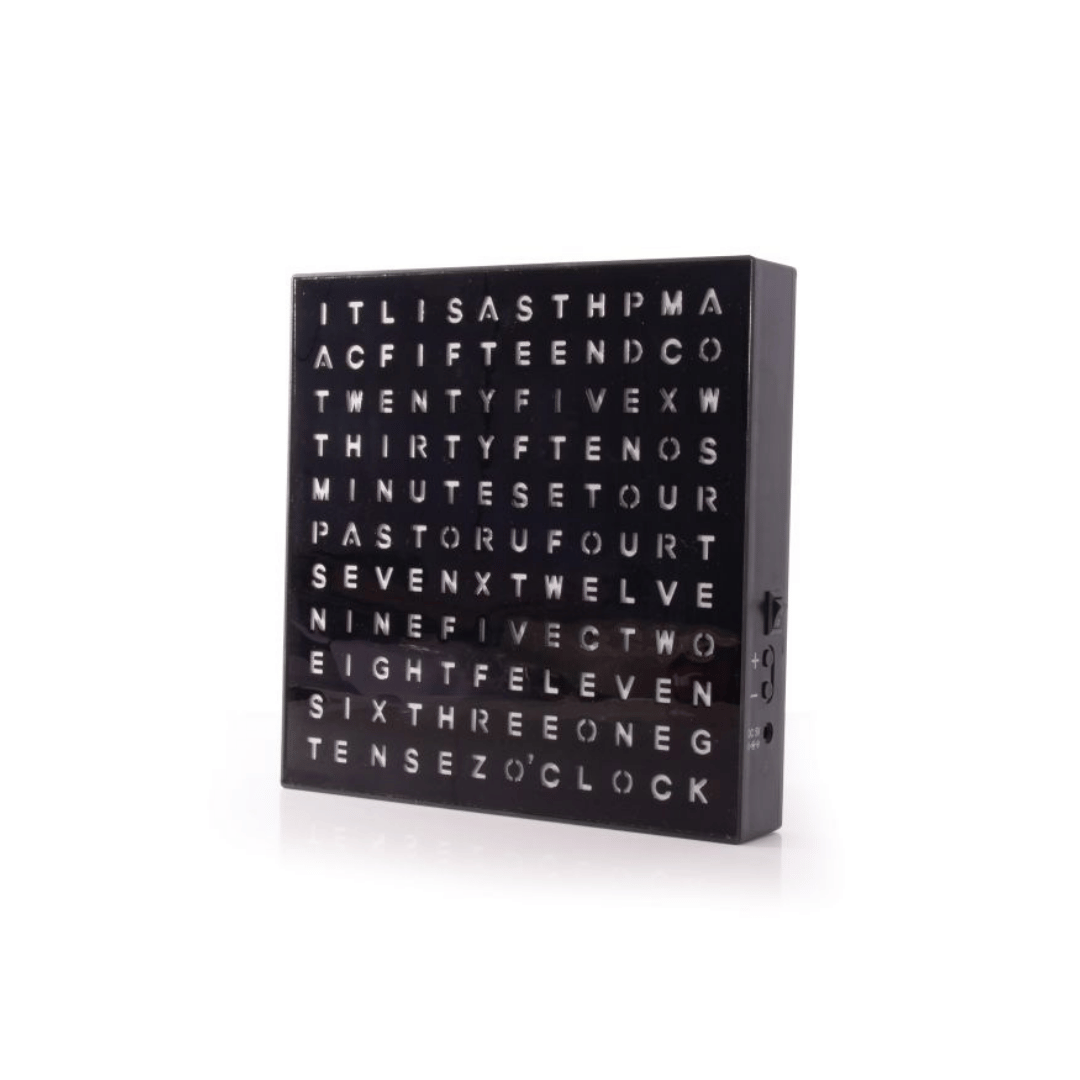 This sleek digital clock spells out the time in words, not numbers, for a modern twist on traditional timekeeping. USB or battery operated, it can stand on your desk or hang on the wall, making it a stylish and versatile addition to any space.