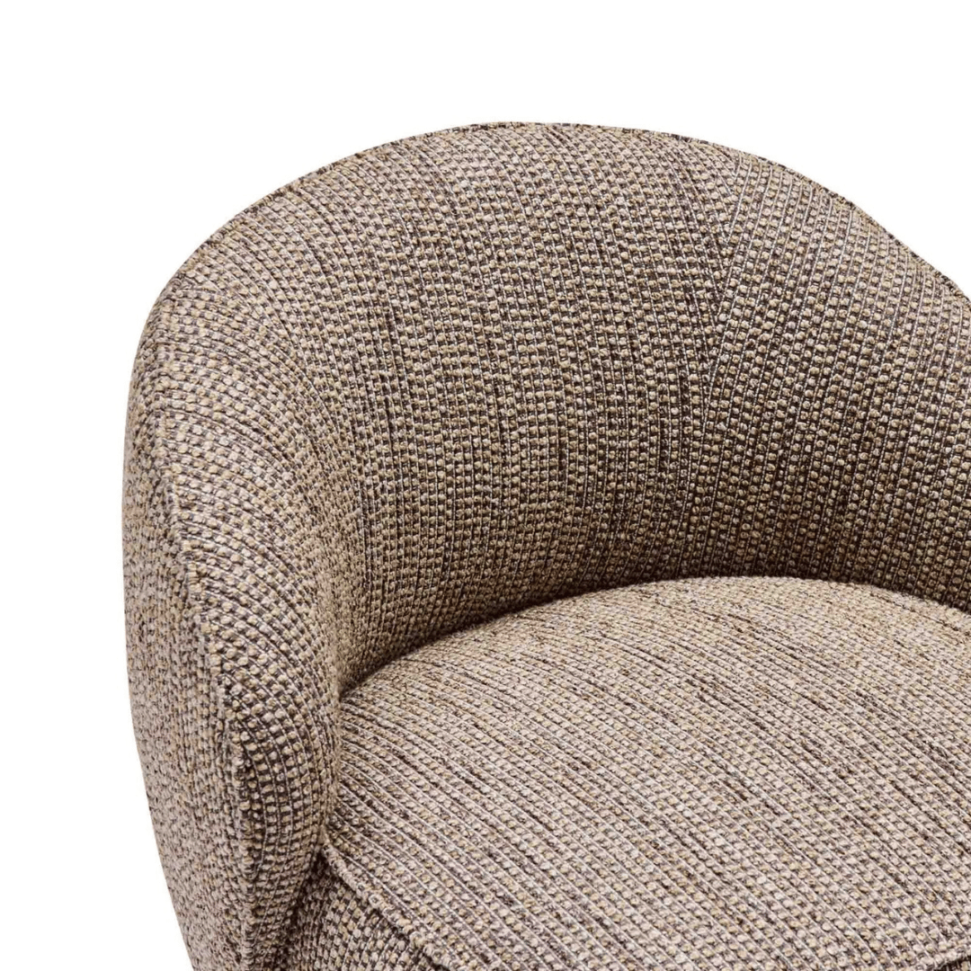 A stylish, comfortable addition to any space, the Emily Armchair features a 360-degree swivel conponent that is a perfect statement piece for any room. With a wide, curved backrest this armchair offers both visual appeal and exceptional support. Experience versatile elegance and enduring comfort with this beautifully designed chair.