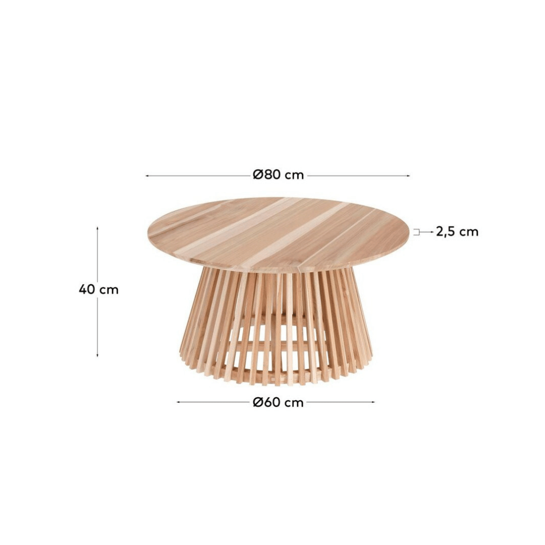 Having a compact 800mm diameter, the Finn round coffee table is ideal for small living spaces. It also has the ideal proportion for a modular sofa. The tapered pedestal design features delicate slatting of solid Mindi timber, providing a lighter visual silhouette by allowing light through. The round, solid timber top is finished with a bevelled edge for a softer look and the black stain will work with many design schemes.