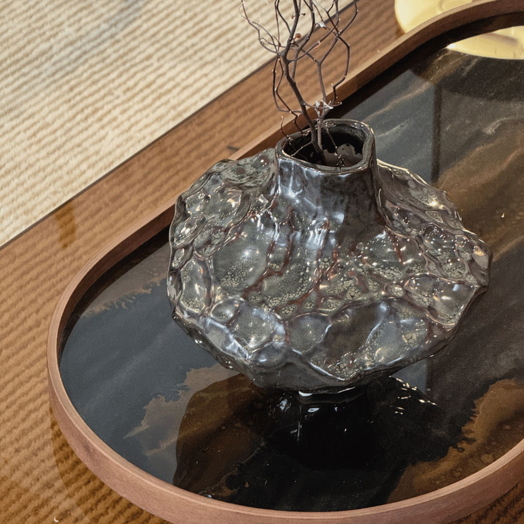 Welcome a tasteful, urban design to your home with the Ginza vase. Finished in a high-gloss dark green, this vase can hold living or dried arrangements with ease and taste. The Ginza will even look great standing alone as a focal piece.