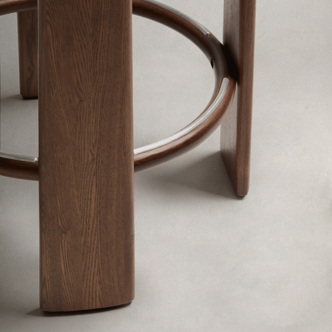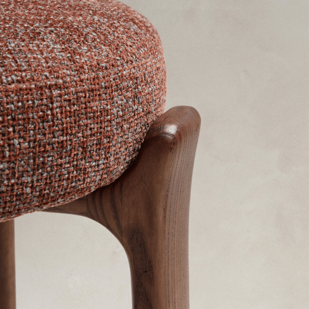 Feel instantly at ease with the stylish Hill barstool. This plush and welcoming stool is perfect for the modern entertainer with its mid-century design and seat. The seat is crafted from high-density foam, providing comfort and extra support. This barstool also features eloquent walnut brown stained ash timber legs which hug the seat of the chair, giving it a stylish aesthetic.