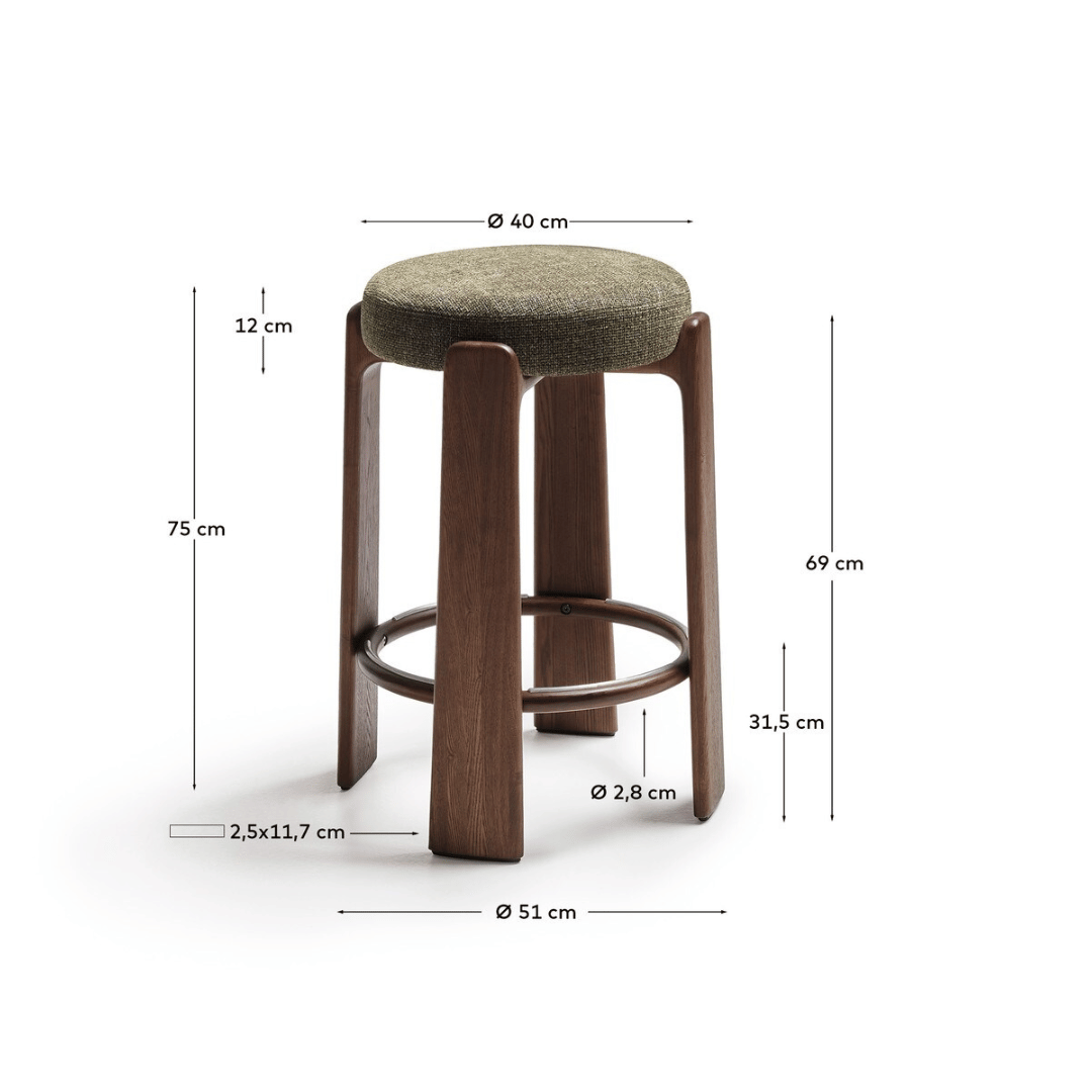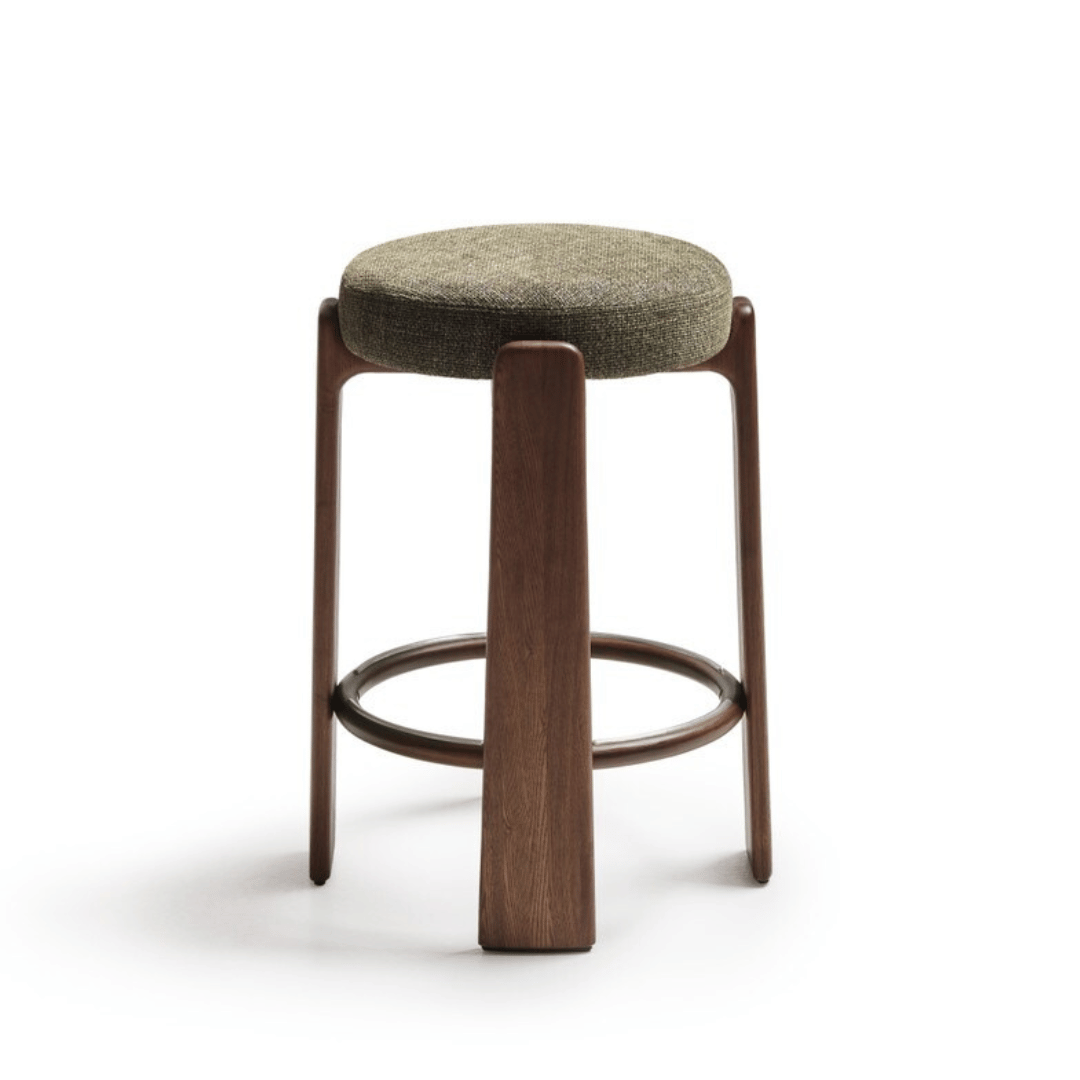 Feel instantly at ease with the stylish Hill barstool. This plush and welcoming stool is perfect for the modern entertainer with its mid-century design and seat. The seat is crafted from high-density foam, providing comfort and extra support. This barstool also features eloquent walnut brown stained ash timber legs which hug the seat of the chair, giving it a stylish aesthetic.