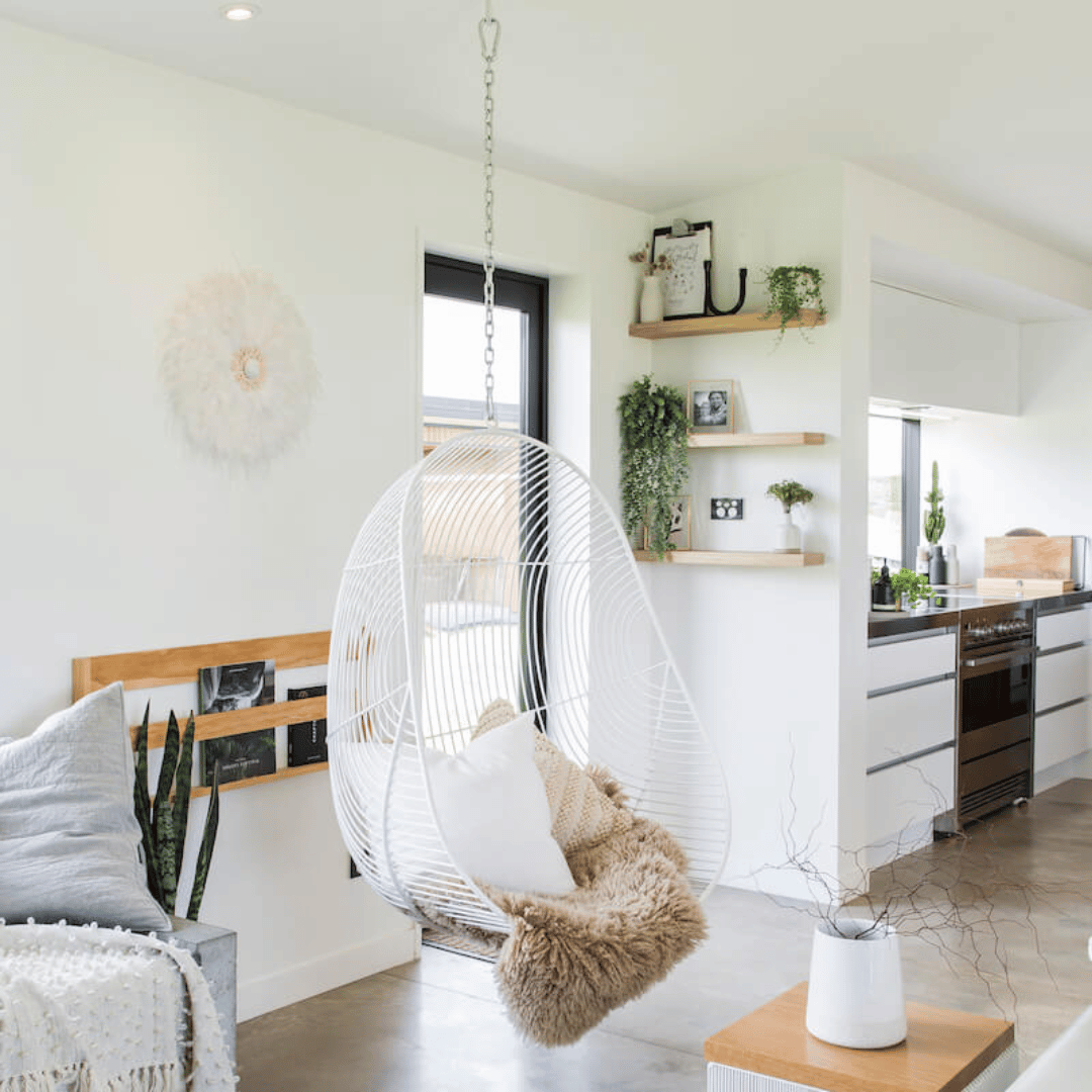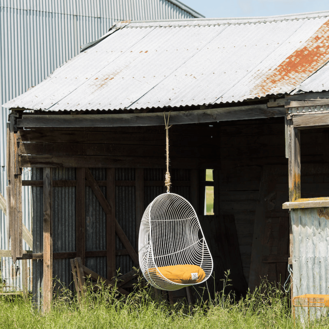 The Hokianga hanging patio is the definition of ultimate relaxation. Available in a fresh white, the Hokianga will become a welcome feature within your home and outdoor space. The ergonomic design of the chair supports your body, providing comfort and support. Before the powder coating process, a spray is applied to each Hokianga with a special PVDF base coat, ensuring durability and rust resistance. Because of this, they can be used in both indoor and outdoor areas. The stainless steel composition makes it ideal for high humidity and coastal use. For ultimate comfort, pair with the Hokianga Big Puffy cushion.