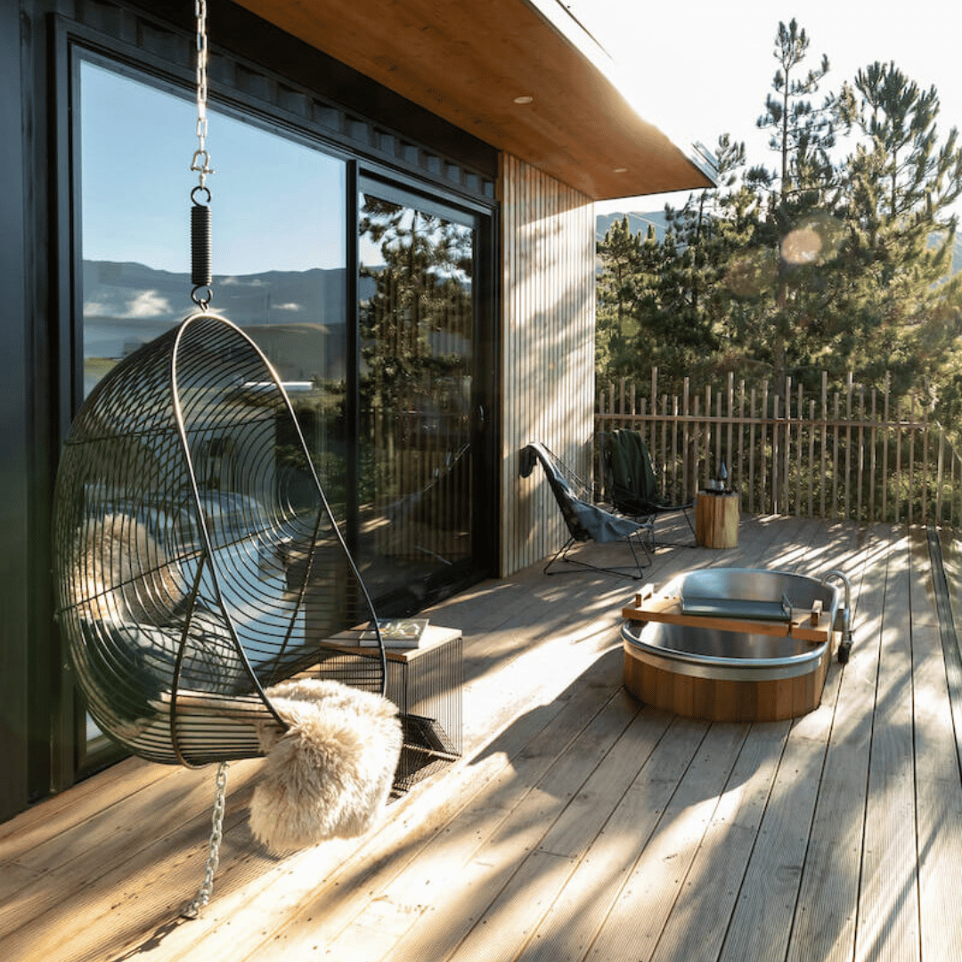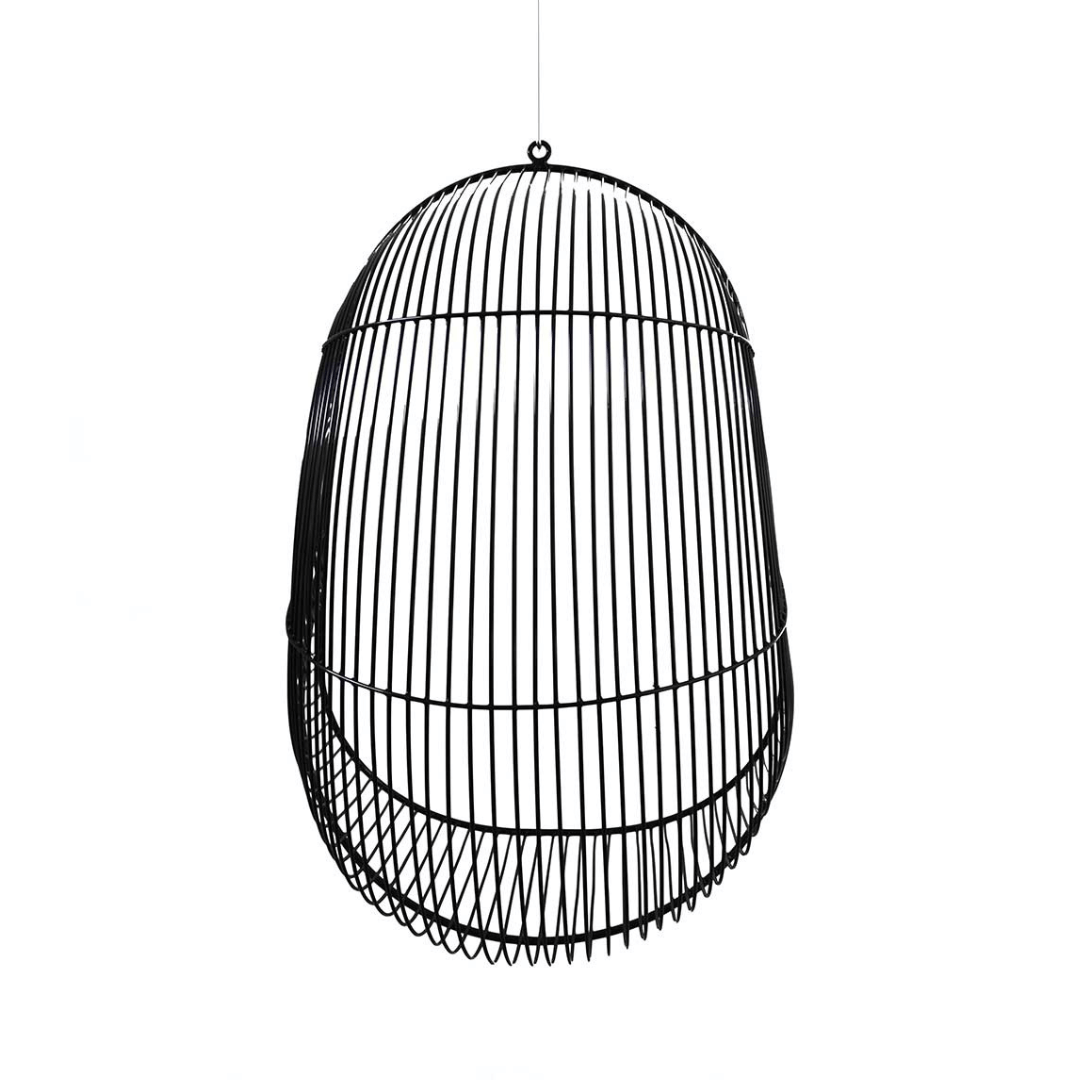 The Hokianga hanging patio is the definition of ultimate relaxation. Available in a moody black, the Hokianga will become a welcome feature within your home and outdoor space. The ergonomic design of the chair supports your body, providing comfort and support. Before the powder coating process, a spray is applied to each Hokianga with a special PVDF base coat, ensuring durability and rust resistance. Because of this, they can be used in both indoor and outdoor areas. The stainless steel composition makes it ideal for high humidity and coastal use. For ultimate comfort, pair with the Hokianga Big Puffy cushion.