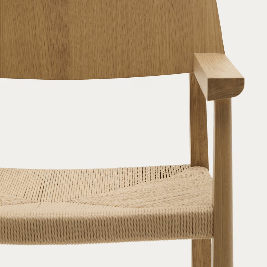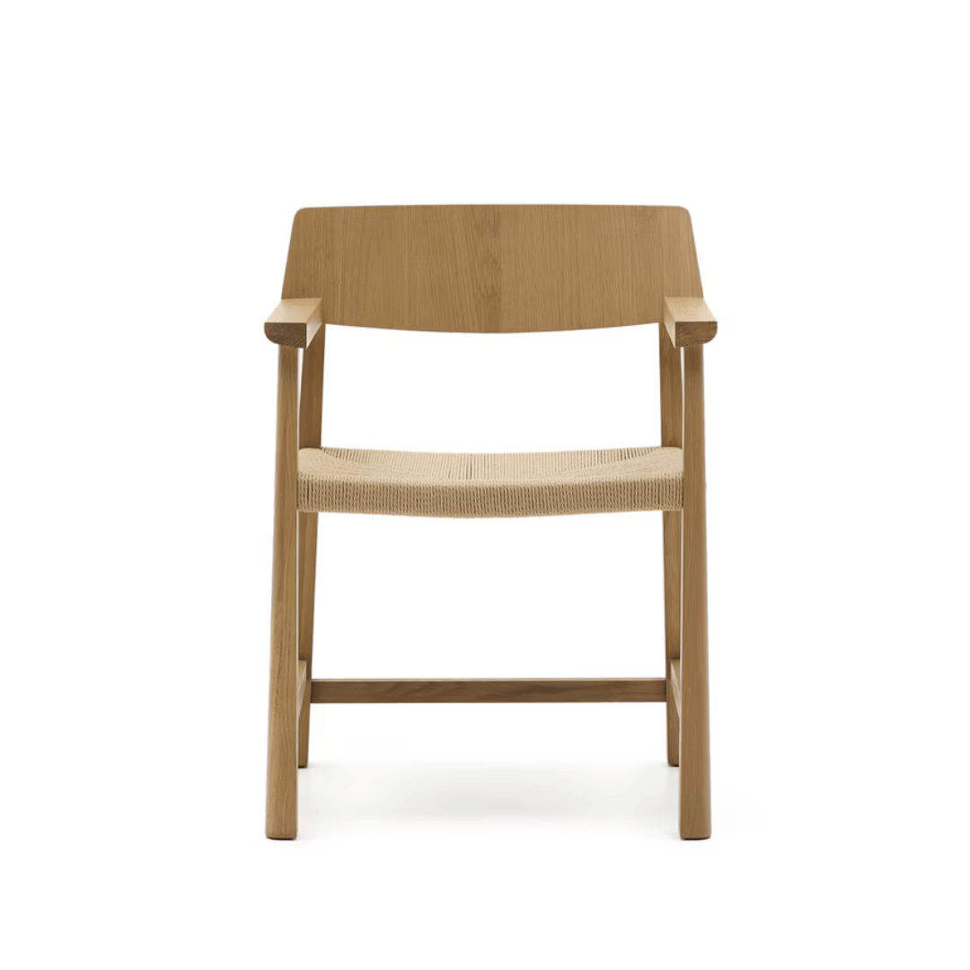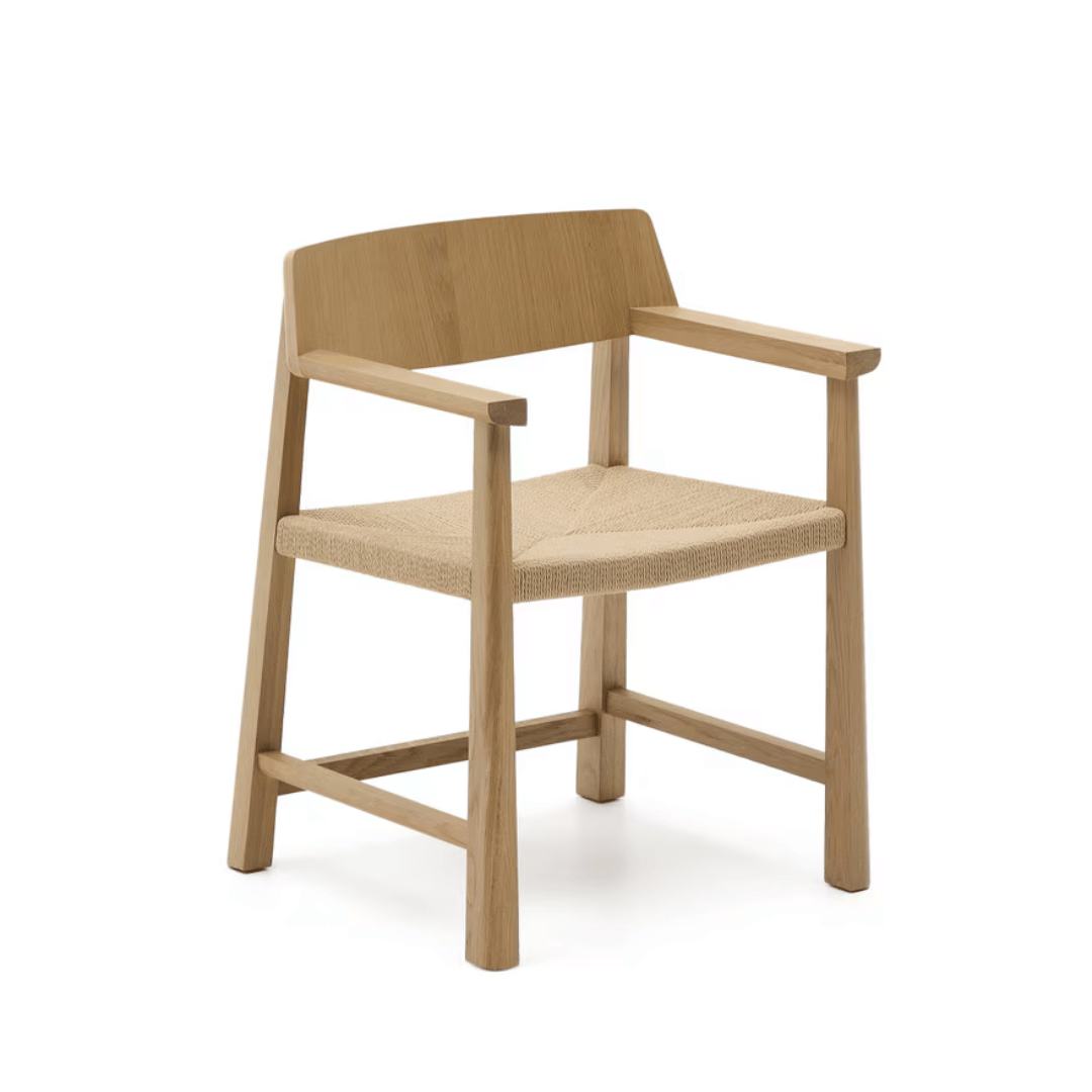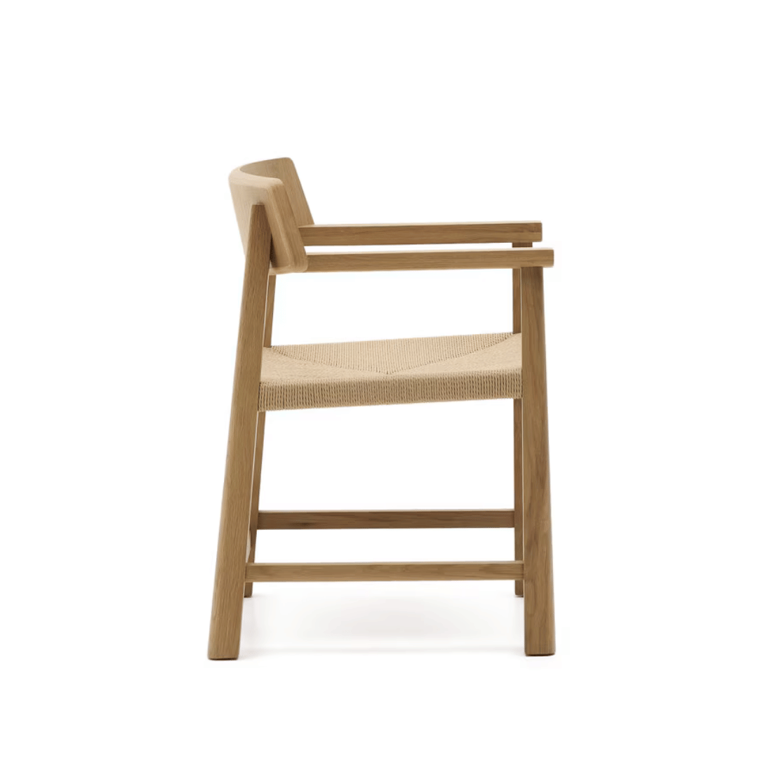 Welcome a timelessly stylish design to your home with the Idun dining chair. Made from a mix of solid and veneer Oak, the Idun will introduce a natural feel with the warmth of the timber and rope seat. Elegant slanted legs and the cross-bar design guarantee stability and exceptional robustness. Plus, felt pads are applied to the bottom of the legs to protect your flooring. The Oak timber is coated with a water-based barnish to maintain its colour and shine, which also allows for easy cleaning.