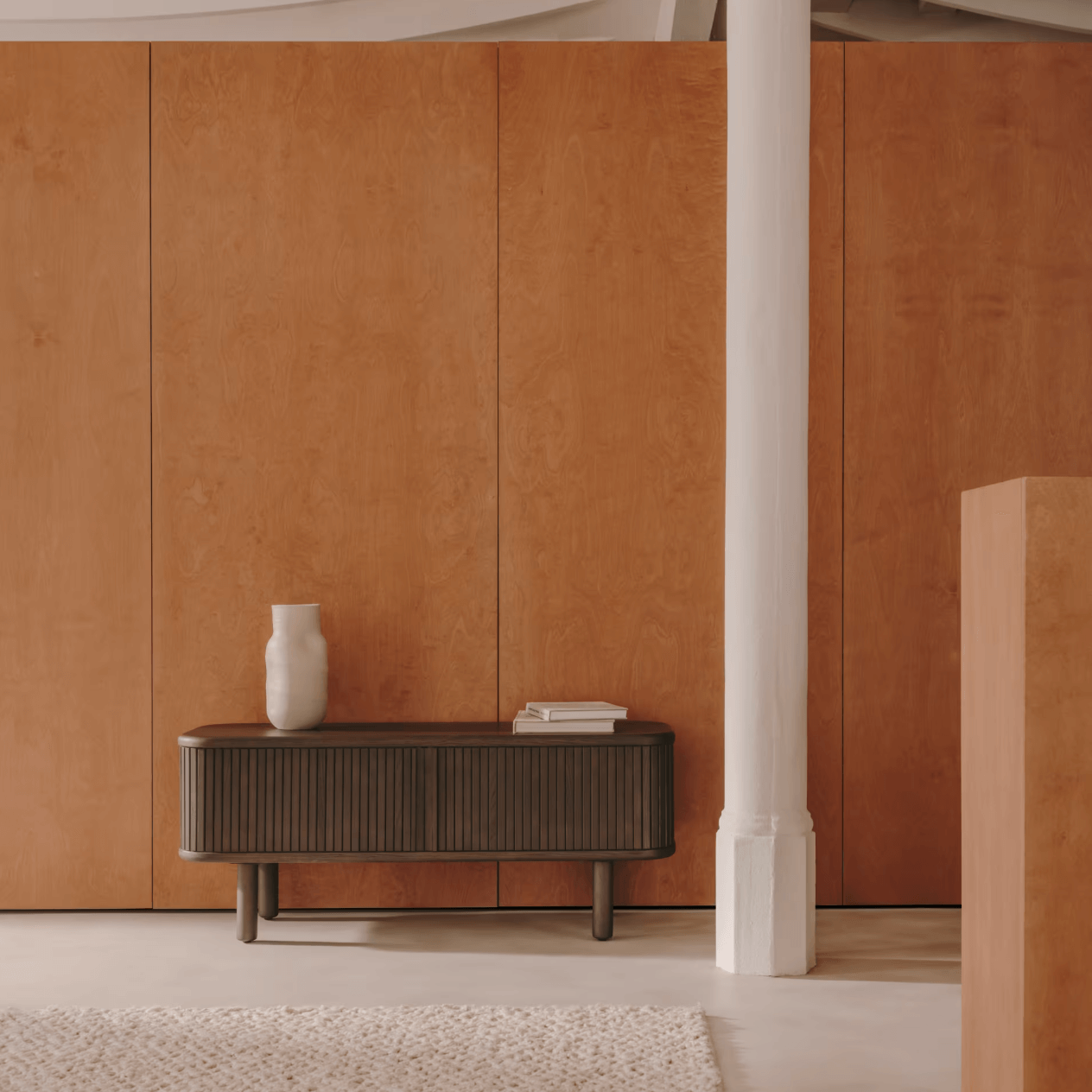 Say hello to the impressive Kevan entertainment cabinet. Featuring sliding tambour doors that are an innovative space saver because it doesn't swing out. The Kevan is made from ash wood and ash veneer in a dark finish. Inspired by the classic tambour-blind furniture of the 18th century in Europe, Kevan represents history, craftwork and long-lasting design. Incorporate effortless style into your living space with the Kevan entertainment cabinet. Pair with other pieces in the Kevan range.
