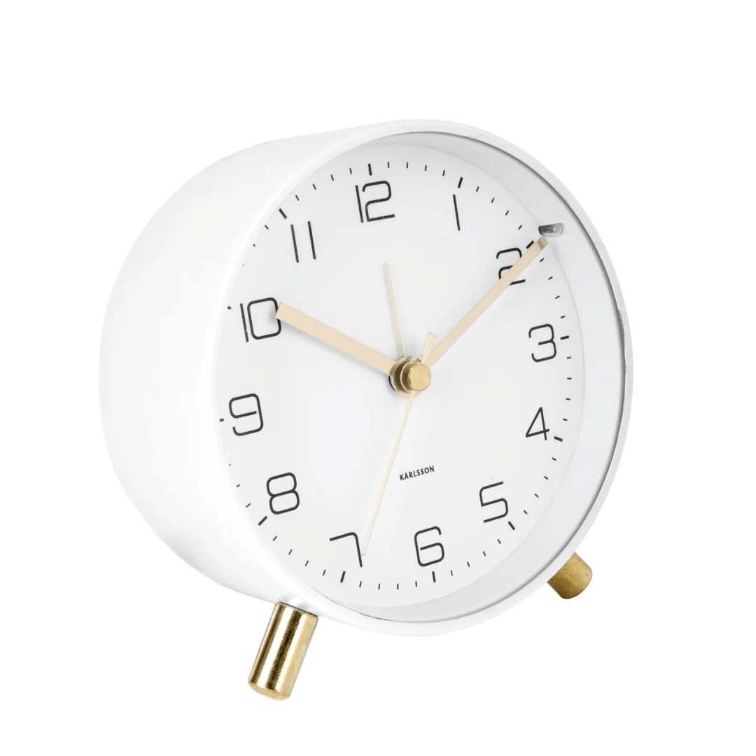 The Lofty alarm clock will add a practical and stylish feel to any room in your home. The compact size is perfect for most bedsides, whilst the brushed gold feet and clock-hands add a warming and luxurious touch.