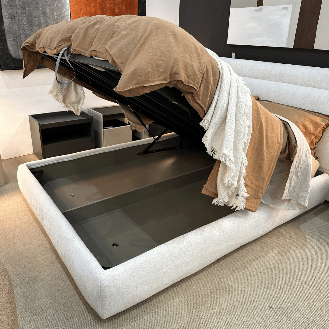 Blending modern elegance with practicality, the Marshmallow 2 Bed will create the perfect bedroom sanctuary. Featuring a double-padded headboard and a gas lift base, this bed offers ample storage whilst remaining equally stylish. The gas-lift storage space features small ventilation vents, keeping your stored items fresh and dry. Upholstered in a cloud-like ivory fabric, the Marshmallow will lend itself to an array of interior styles.