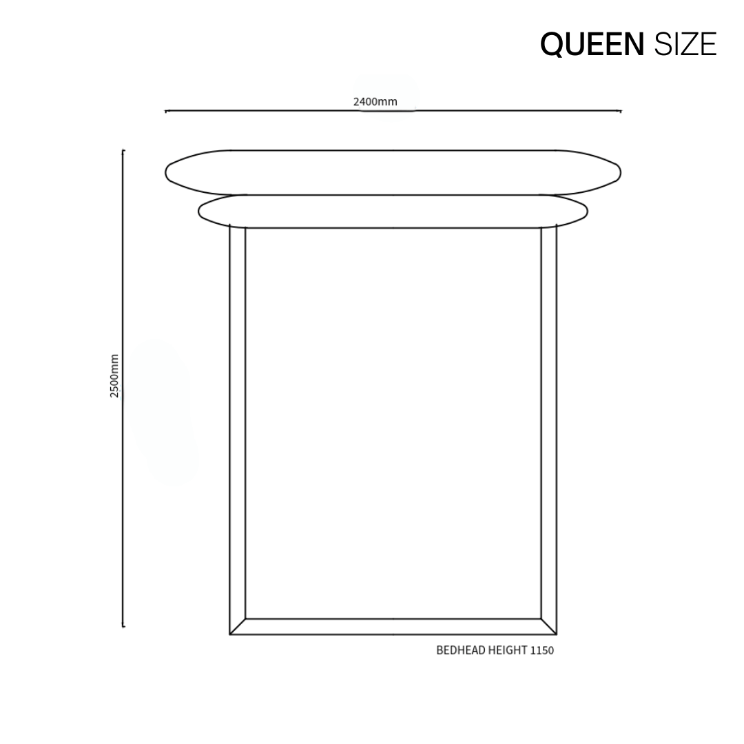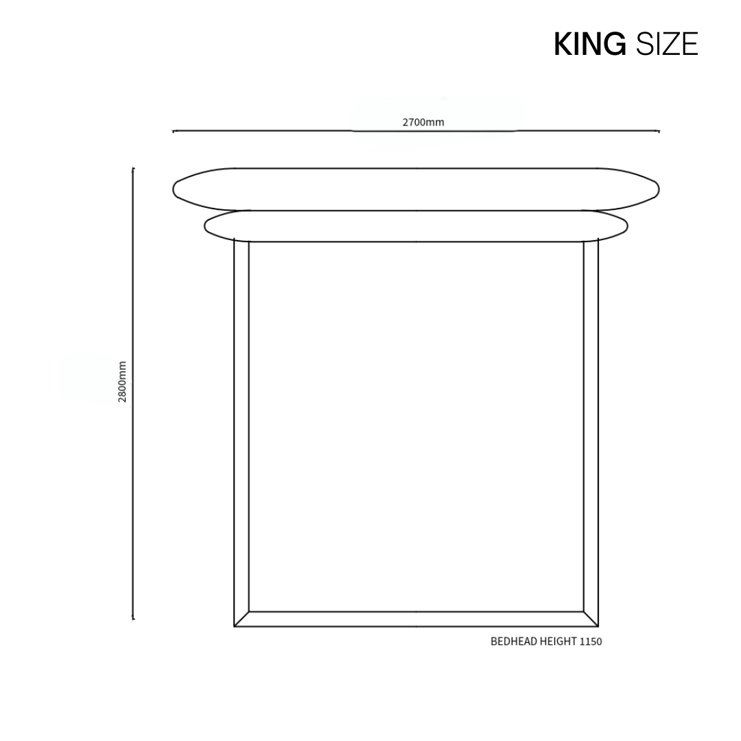 - Dimensions: Queen | 2400W x 2500D x 1150mm H, KING | 2700W x 2800D x 1150mm H