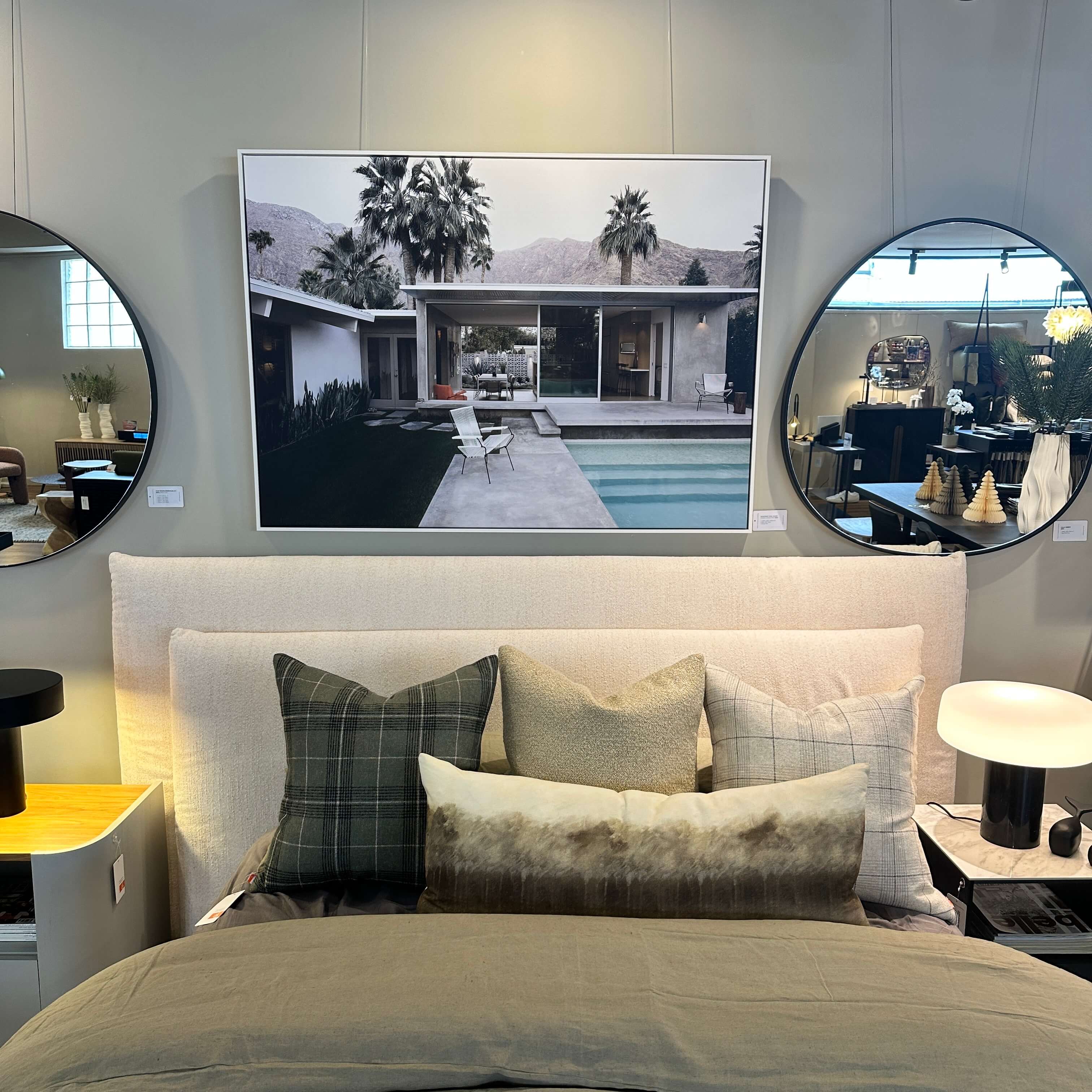 The calm Palm Springs ambience is encapsulated in the Modernist poolhouse print. Framed in a slim white frame, this print will become the hero wherever placed. The subtle colour palette will lend itself to an array of interior styles, giving your home the perfect, serene feel.