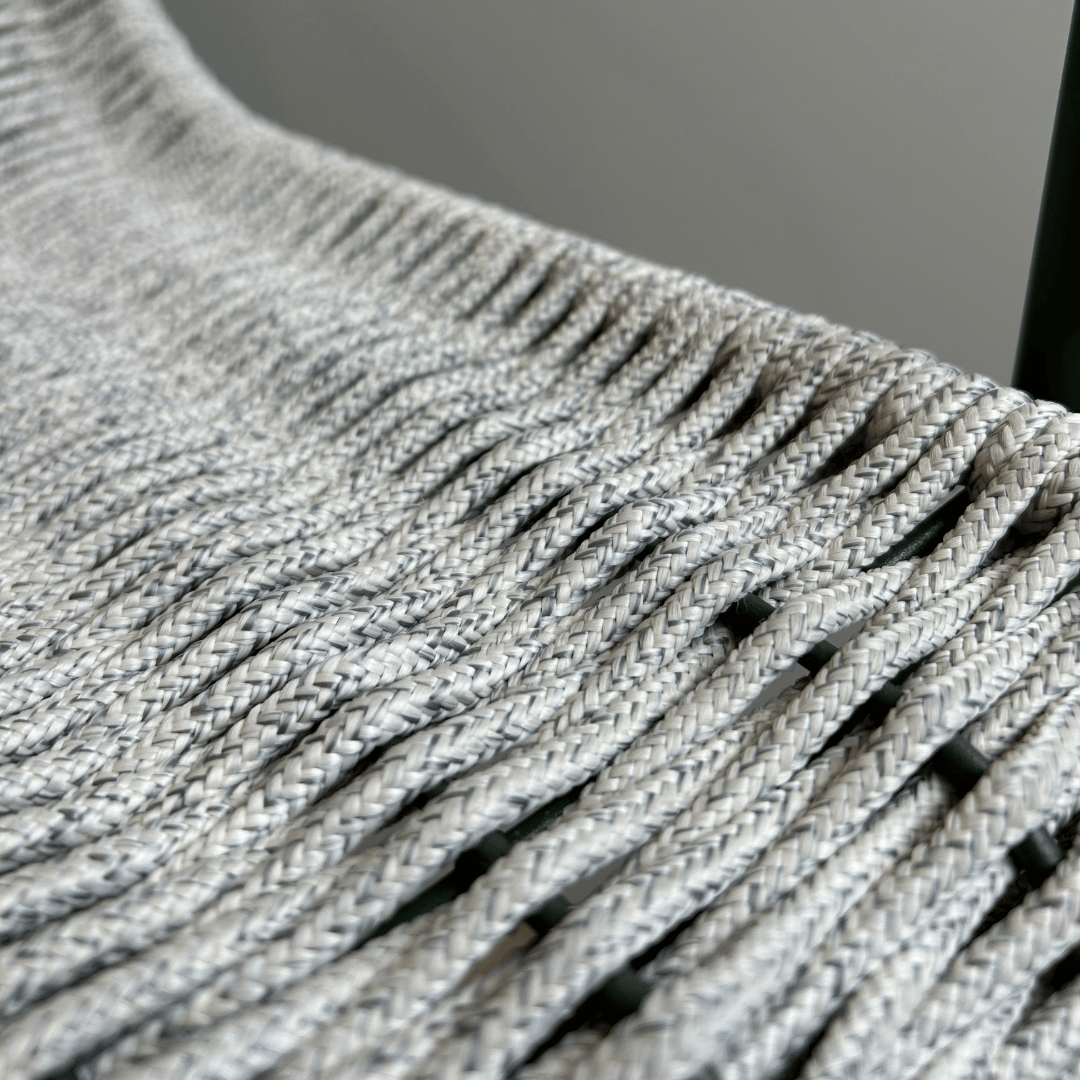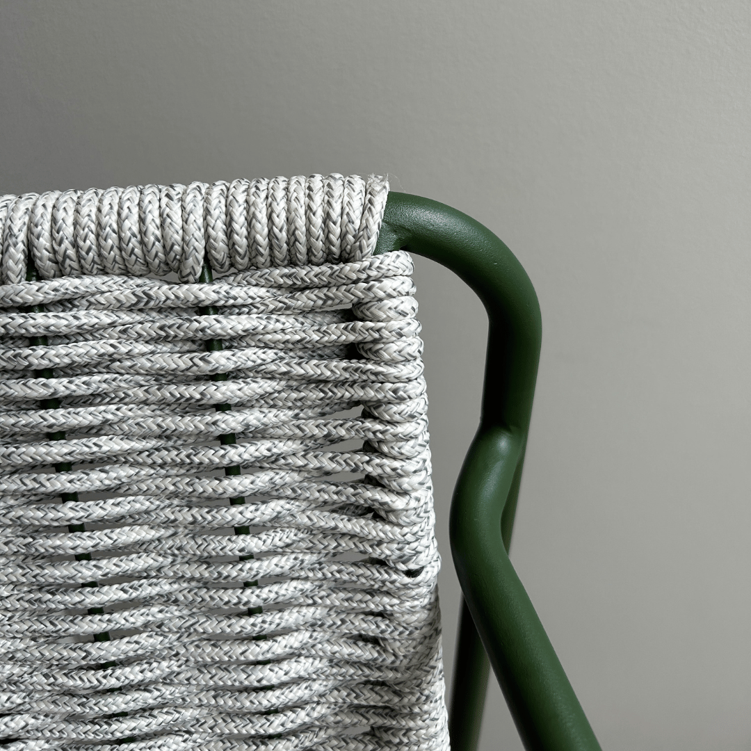Welcome a Mediterranean and contemporary feel to your outdoor or patio space with the Mori patio barstool. Constructed from a durable UV-resistant polypropylene rope and galvanised steel, this durable and sculpted stool offers ultimate comfort. The beautifully curved seat has a slim profile and is finished in a soft ecru brige, complementing the tonal green steel legs to create a cohesive and tasteful look.