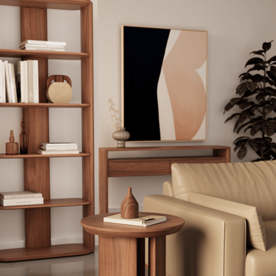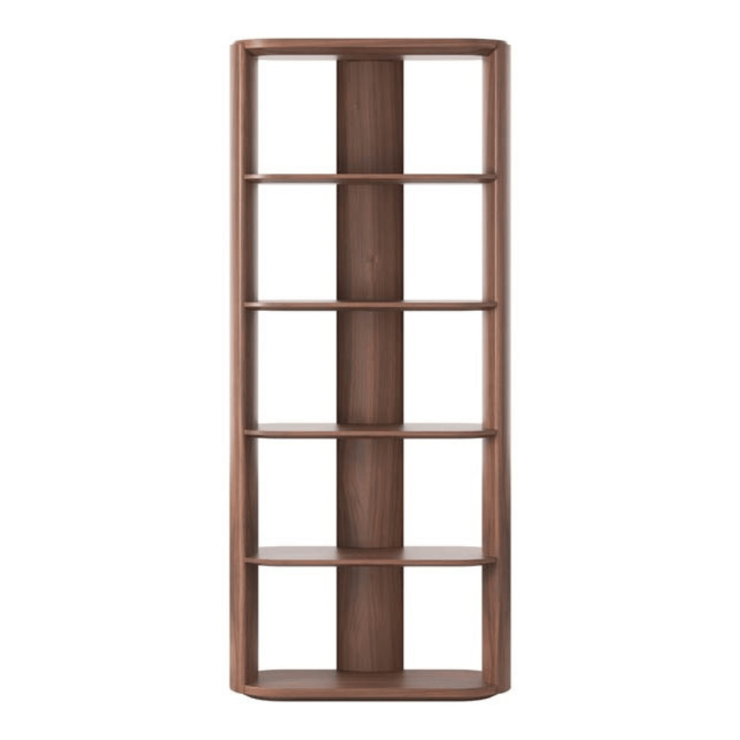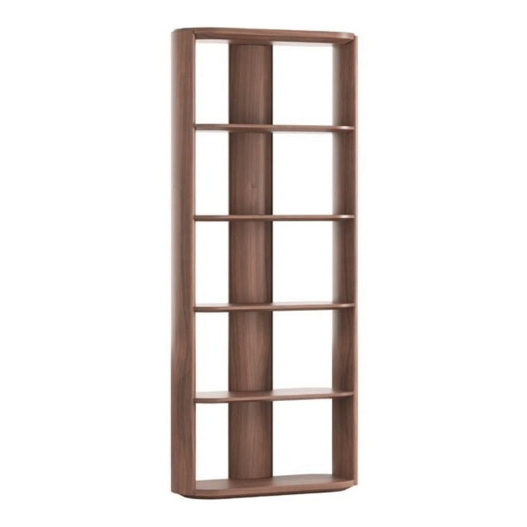 Welcome a mid-century and natural design to your home with the Myles bookshelf. This sculptural and refined bookshelf is enhanced with the use of natural Walnut. The balance of form and function makes this a timeless piece, whilst the five large shelves allow for ample storage. As Walnut is a natural product, it is to be known that each piece will vary slightly in grain and colour.