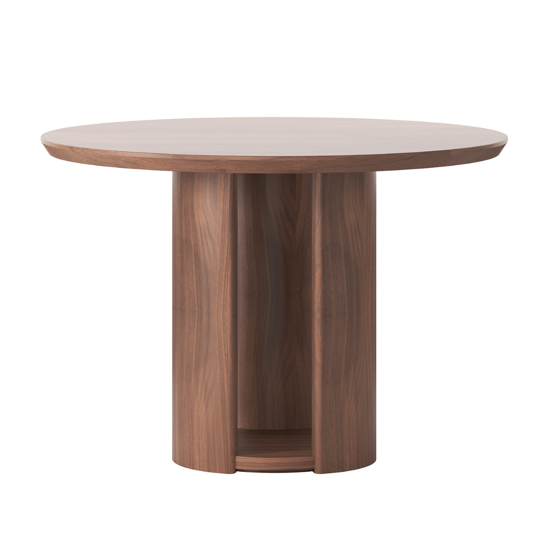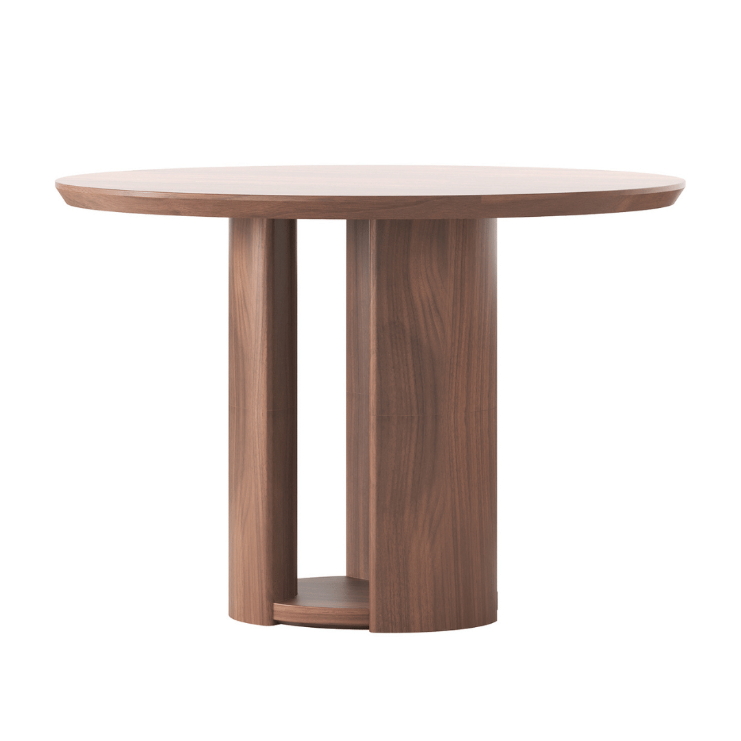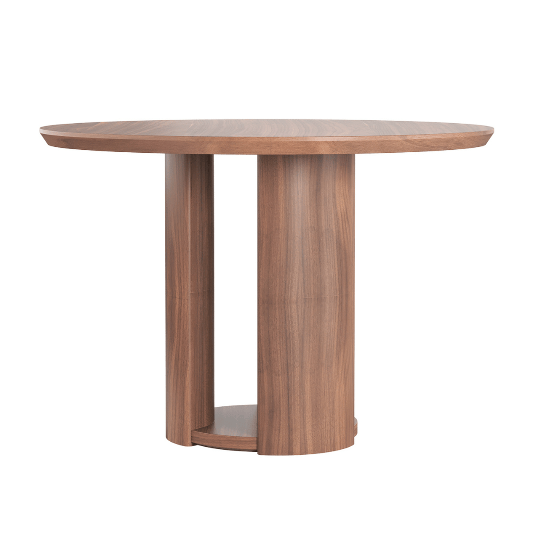 Welcome a mid-century and natural design to your dining space with the Myles dining table. This sculptural and refined dining table is enhanced with the use of natural Walnut. The balance of form and function makes this a timeless piece, whilst the open pedestal base is ideal for compact spaces. As Walnut is a natural product, it is to be known that each piece will vary slightly in grain and colour.