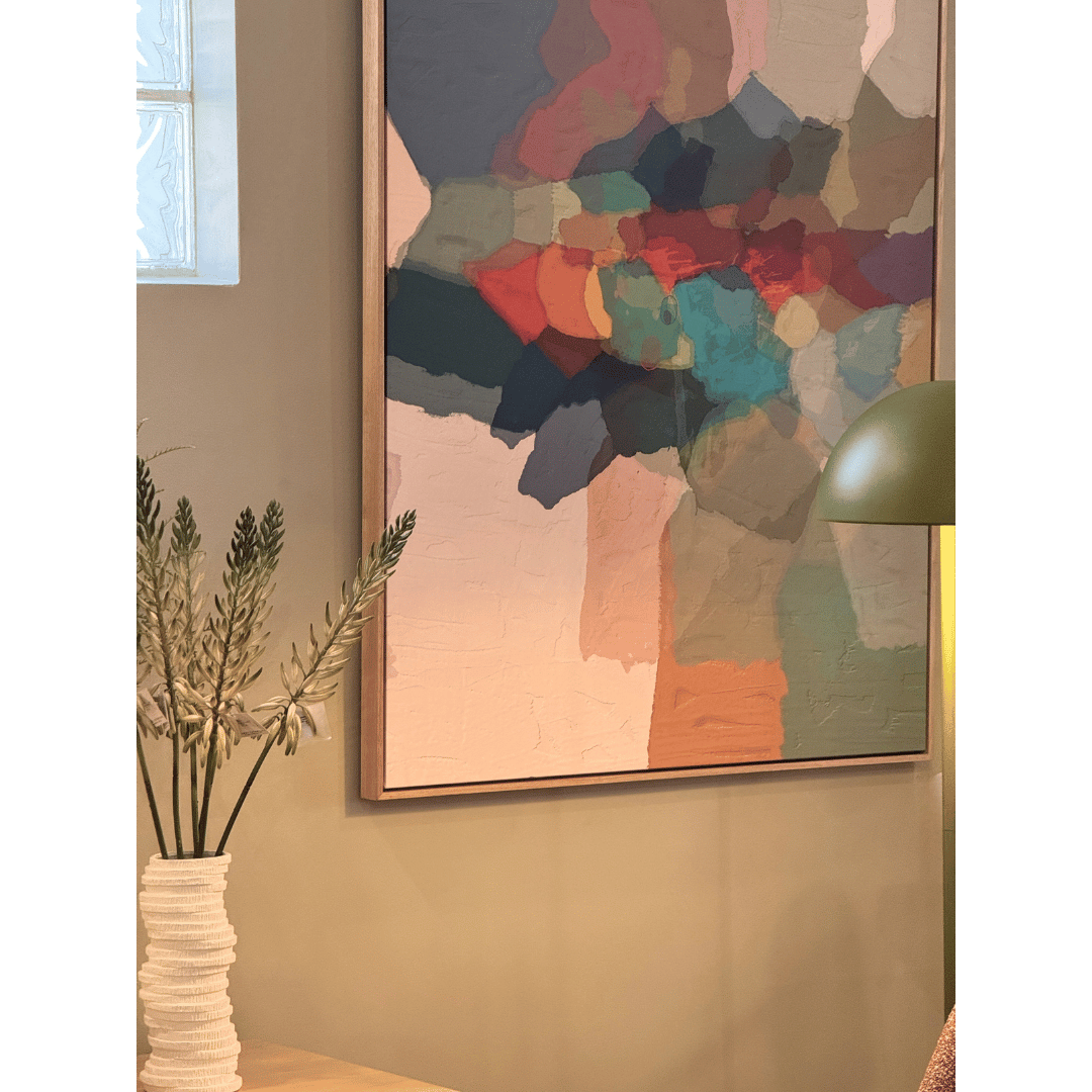 Welcome a modern and tasteful piece into your home with the Natura framed canvas print. Available in three functional sizes, this hand-painted canvas print features bright colours and a natural frame. The Natura can be hung vertically or horizontally, allowing them to fit in most interiors.