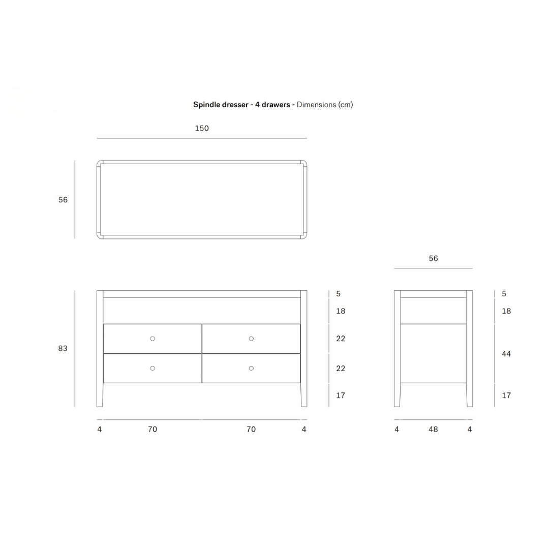 The oak Spindle dresser has drawn inspiration from the traditional spindle spinning wheel. The design is simple yet stunning in form and would complement any bedroom. This beautiful piece is crafted from solid oak and is finished with hardwax oil to express the individual characteristics of the timber. For added functionality, there are four oversized drawers to store your belongings and one large shelf for books or magazines. The tempered glass top adds a visual lightness, slightly tapered legs and rounded edges add a soft, sensual quality to this beautiful bedroom piece.