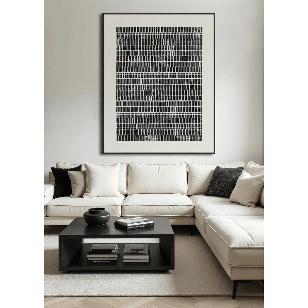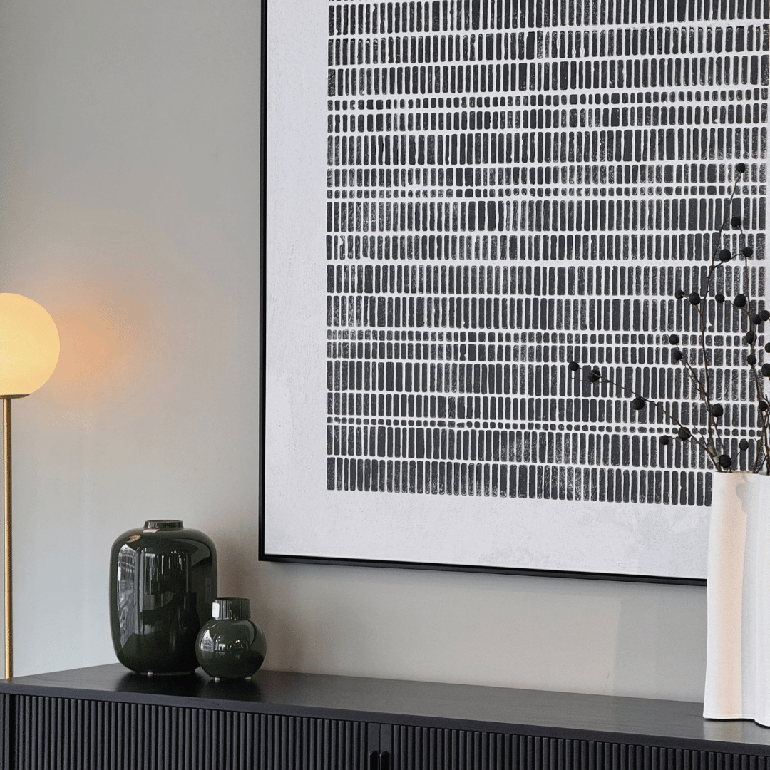 Simple, refined, and ready to hang. Introducing the On Arrival framed canvas print. This oversized and textural print is hand-painted on canvas. The minimal colour palette will lend itself to most interior design styles, whilst the black frame will enhance the abstract print.