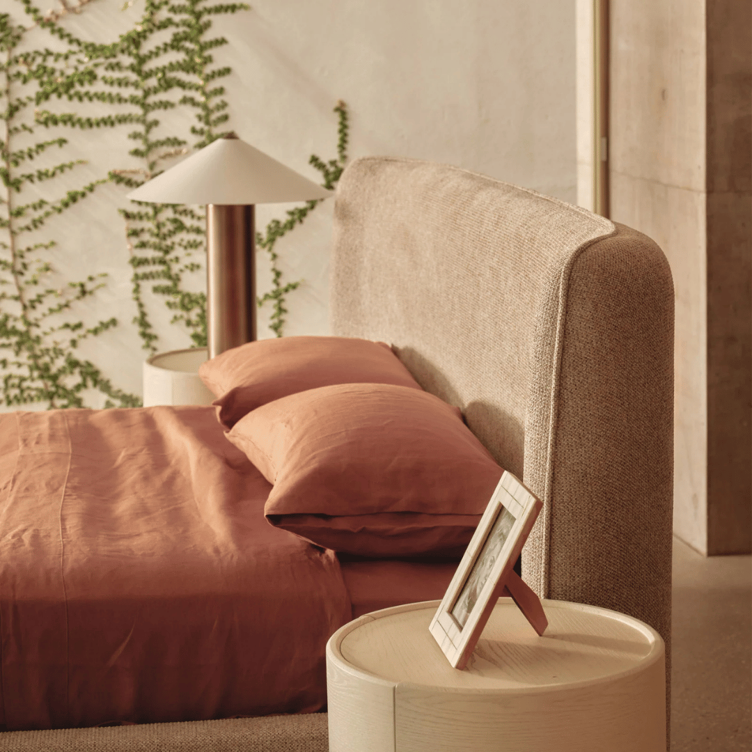 Blend style and strength in your bedroom space with the Orpheus bed head. Featuring clean lines and a generously proportioned headboard, the Orpheus will add a touch of luxury to any bedroom space. The warm tones and simple silhouette created a relaxed yet refined atmosphere.