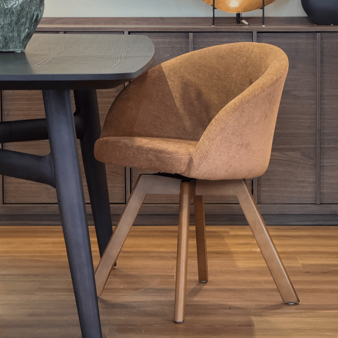 The Otis swivel dining chair will add a subtle charm to your home. With an upholstered seat and legs of beech wood, the minimal design will lend itself to an array of different dining spaces. Whether in the office or the dining room, this Otis gives you freedom of movement for extra comfort without falling short in style. The internal frame is constructed from E0-manufactured wood with low formaldehyde emissions, to leave the planet cleaner.