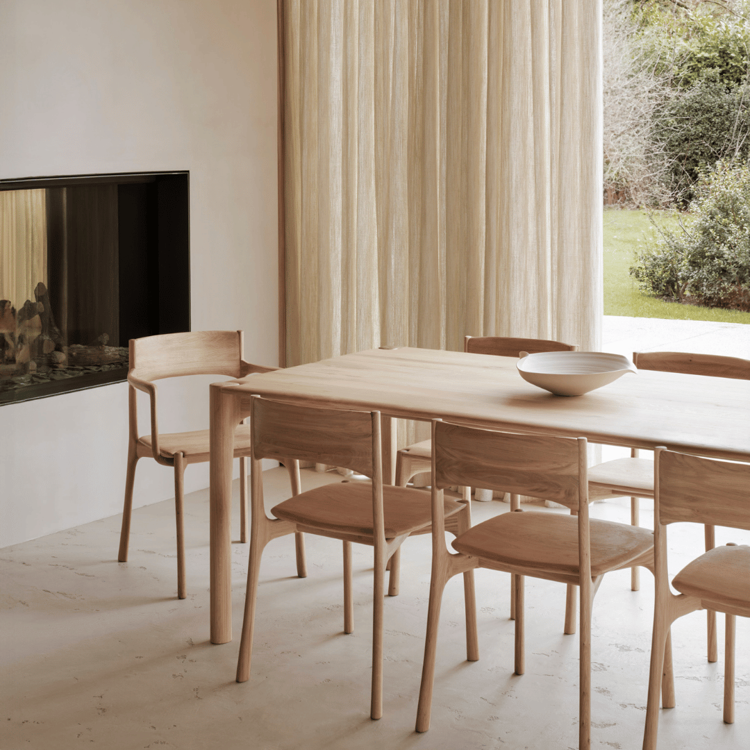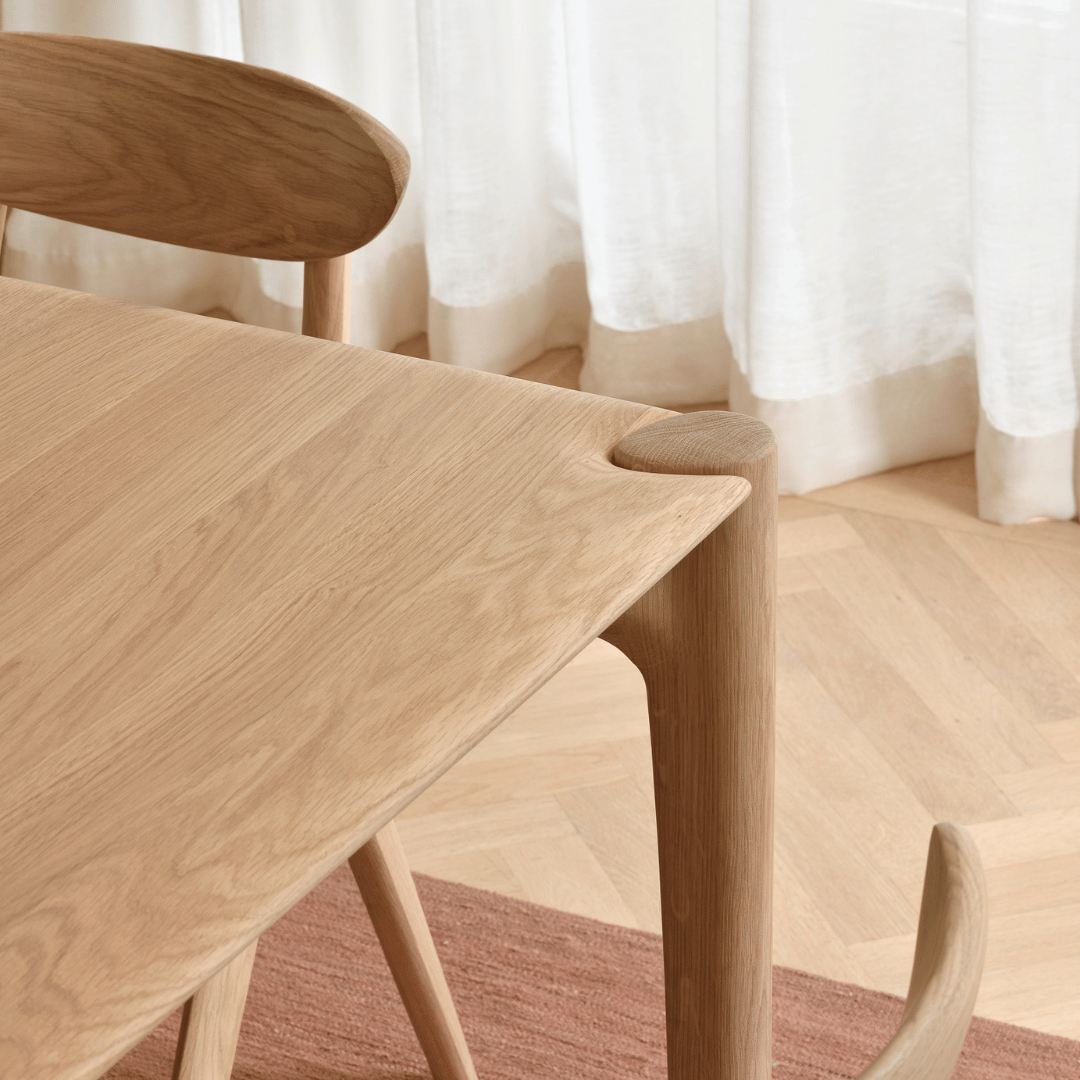 Inspired by nature and designed to entertain, introducing the PI dining table. The curved edges and unique blended leg to top make this a standout yet timeless design. The attention to detail is showcased through the subtle curved detailing, smooth lines and solid build quality. The light Oak is finished in hardwax oil to express the individual characteristics of the timber.