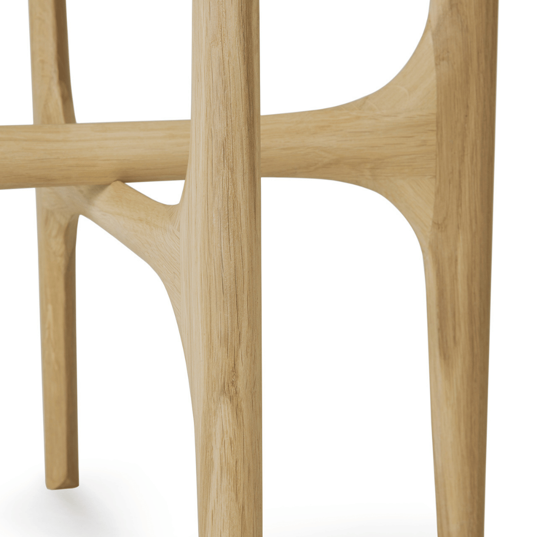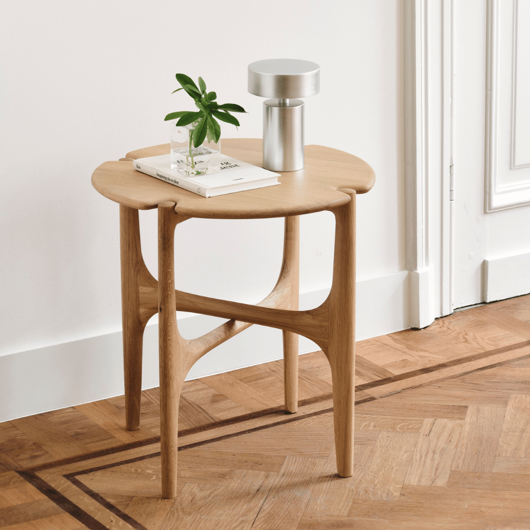 Elevate your living space with the sleek and modern PI side table. This design draws its inspiration from nature, featuring soft gentle curved slim legs that intersect with the table top to create an elegant junction detail. Crafted from solid European Oak timber, this unique side table is finished by hand in a hardwax oil.