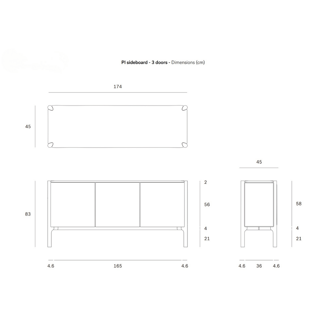 The PI buffet cabinet is a perfect combination between mid-cenutry and minimalist design. This timeless sideboard is crafted from solid oak and is finished with hardwax oil to express the individual characteristics of the timber. The modern and contemporary design features a unique leg design that seamlessly blends with the top of the buffet. Providing abundant storage, three push-to-open doors open to find ample open shelving.