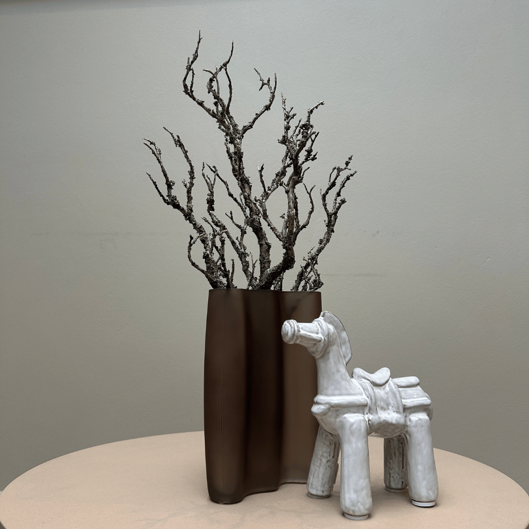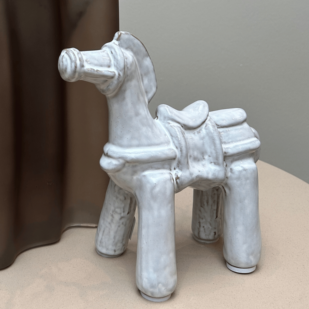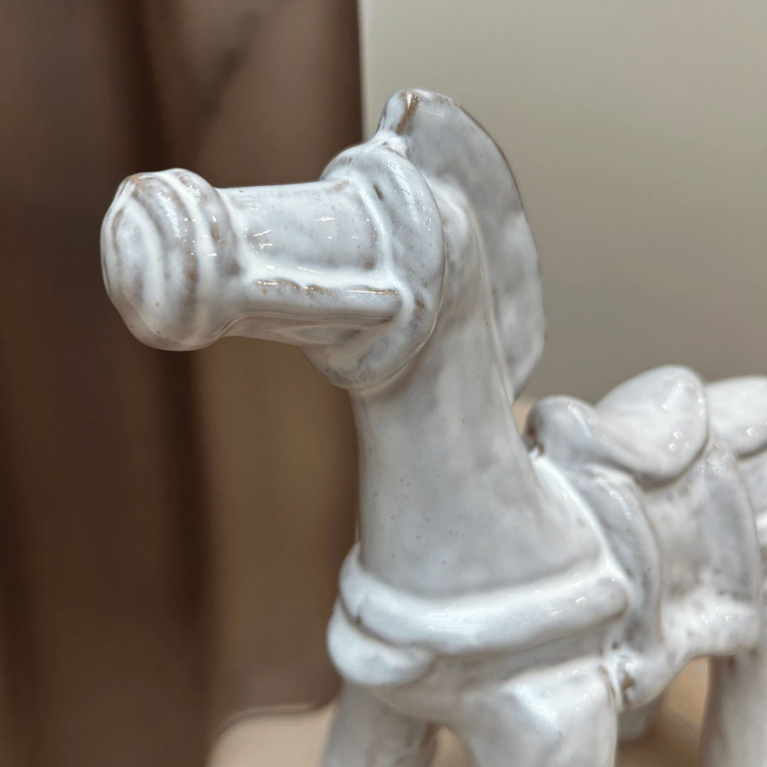 Welcome a captivating piece to your home with the Roken horse sculpture. This rustic is crafted from ceramic and finished with a high-shine white glaze. The organic texture shows hints of the initial ceramic finish, creating a gallery-like finish.
