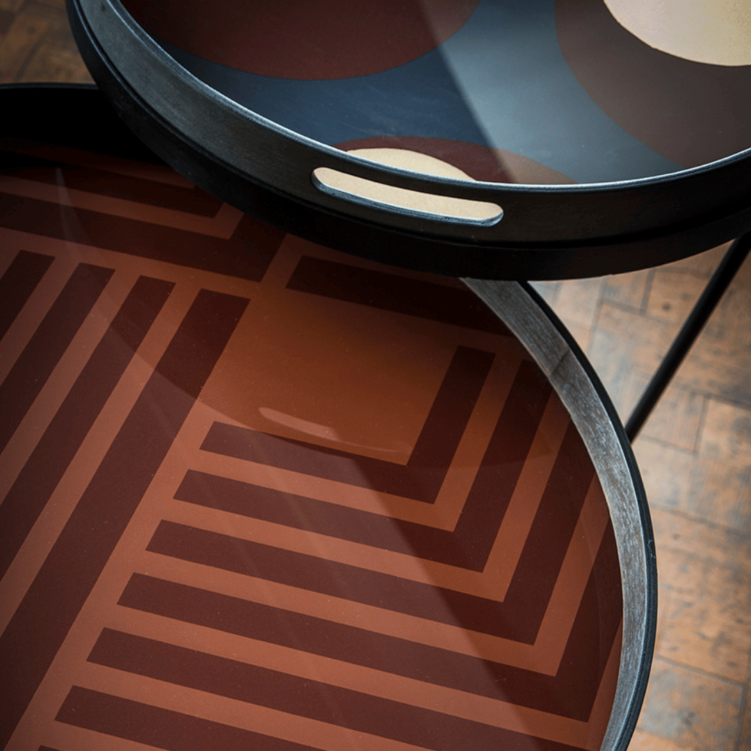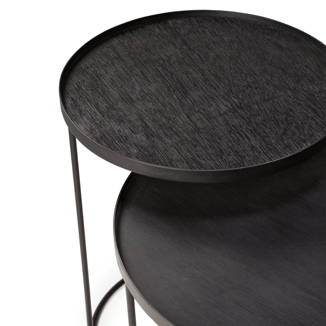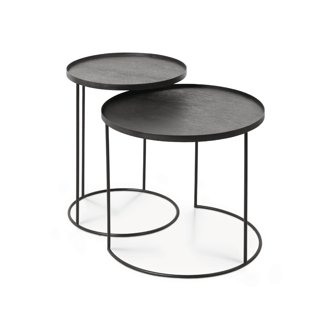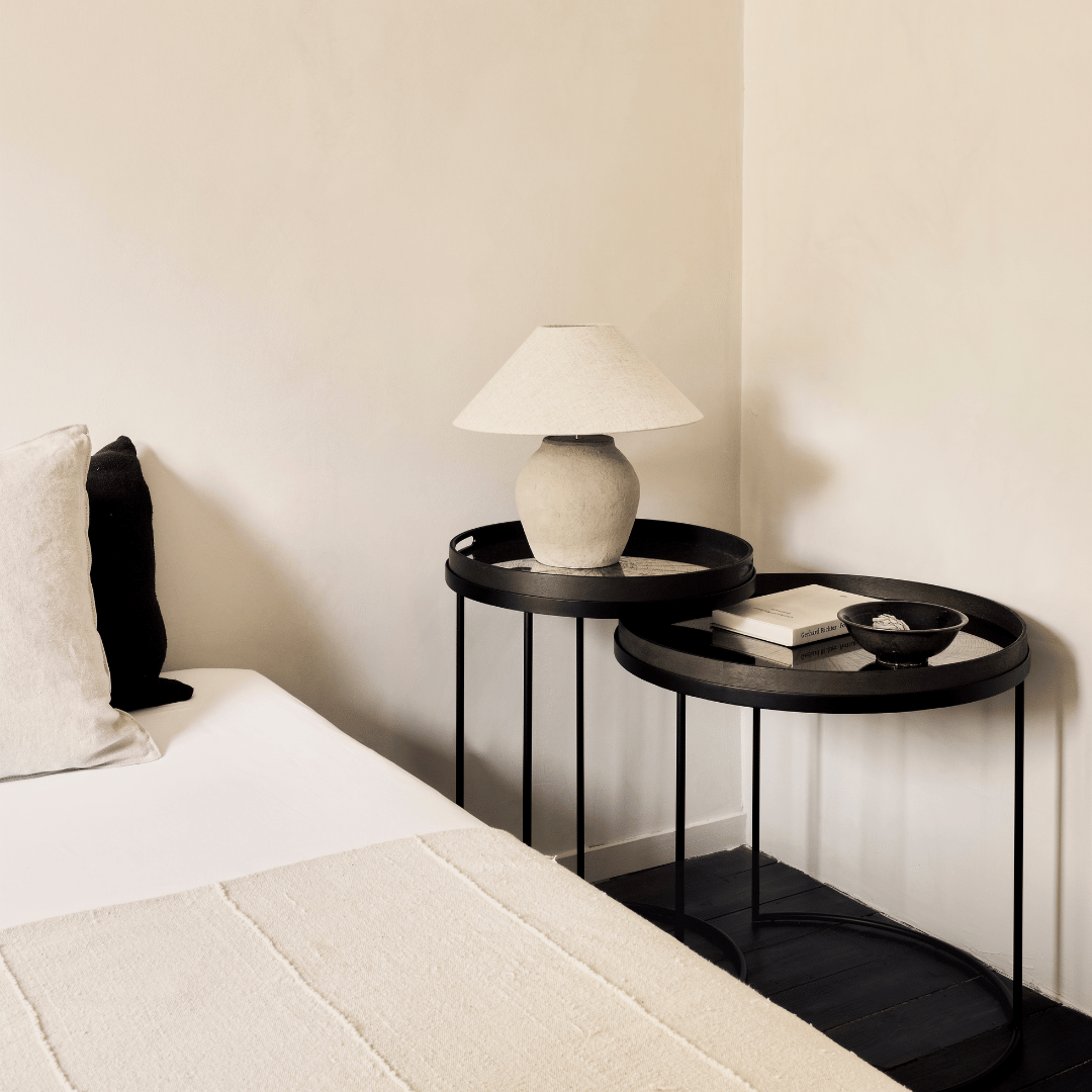 The round tray table is one of our most versatile designs. Functioning effortlessly as a side table, it also offers the flexibility to switch out trays. This lets you mix and match colours, patterns, and styles to create a piece that’s entirely your own. Pair it with a second table for double the creativity and even more styling possibilities. Personalise this nesting side table set with compatible Ethnicraft trays (sold separately) designed to sit on top.