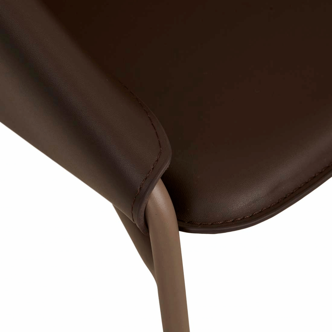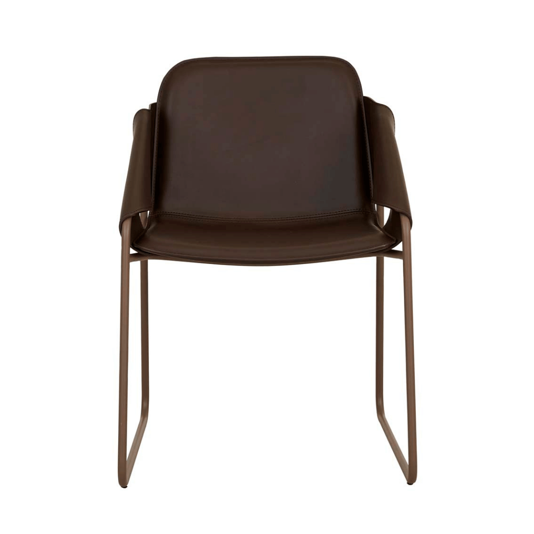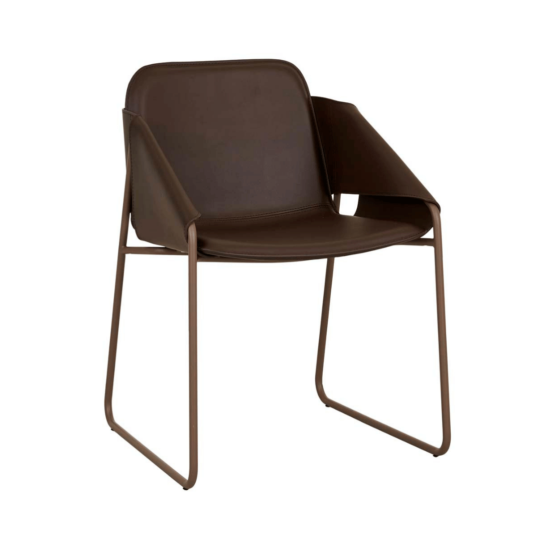 Experience the contemporary charm of the Rye dining chair. A supple recycled leather creates a richly upholstered seating experience, perfect for any stylish living space. The colour-matched powder-coated sleigh legs add an industrial twist, creating a striking visual interest. Crafted with a sleek design, this chair is sure to make a lasting impression.