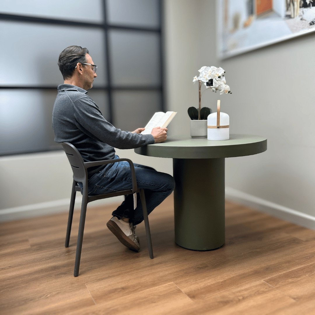 The Saben patio chair combines durability with contemporary design. Constructed from durable recyclable plastic, the minimal design allows it to sit comfortably within any given area. The beautifully curved seat has a slim profile which is enhanced by the minimalist grey colourway. We do suggest storing this chair undercover when not in use for optimum longevity. The Saben is stackable for up to four chairs.