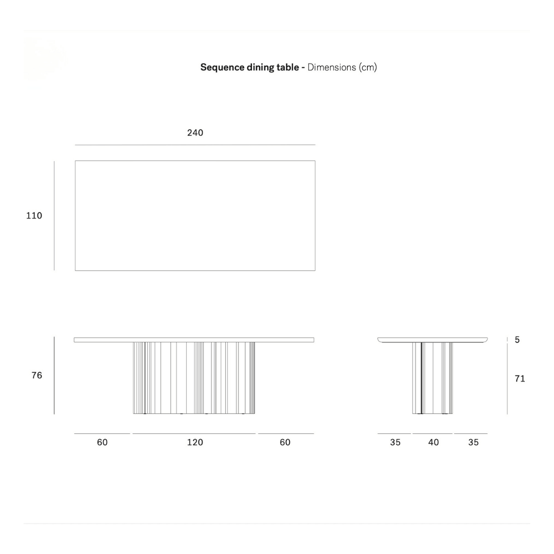 Inspired by rhythmic flows of repetition and variation, the Sequence dining table will become a focal point within your dining space. Finished in a dark brown mahogany varnish, the sculptural bays will play with shadows to create a unique look. Comfortably seat up to 8 people and entertain for hours with the striking Sequence dining table.