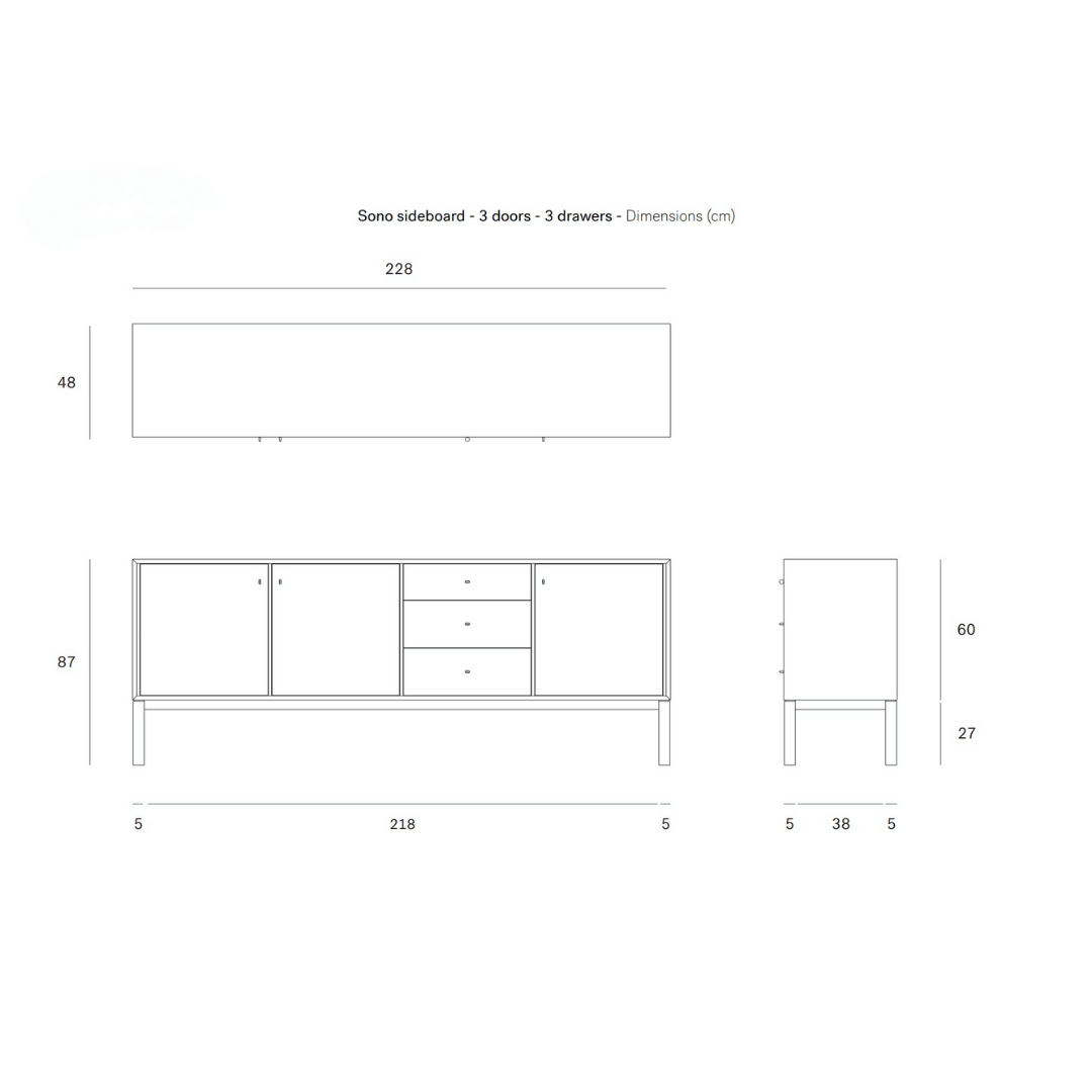 Where antique-inspired craftsmanship meets modern elegance, introducing the Sono buffet cabinet. Constructed from solid teak, this durable and refined piece will be a stunning addition to any room. The varnished teak finish is complimented by subtle brass handles, elevating the look of your space. Behind each door and within every drawer you will find ample storage, perfect to hide everyday items.
