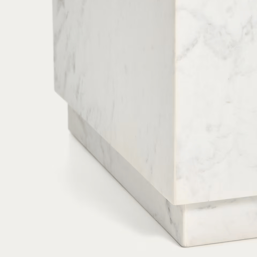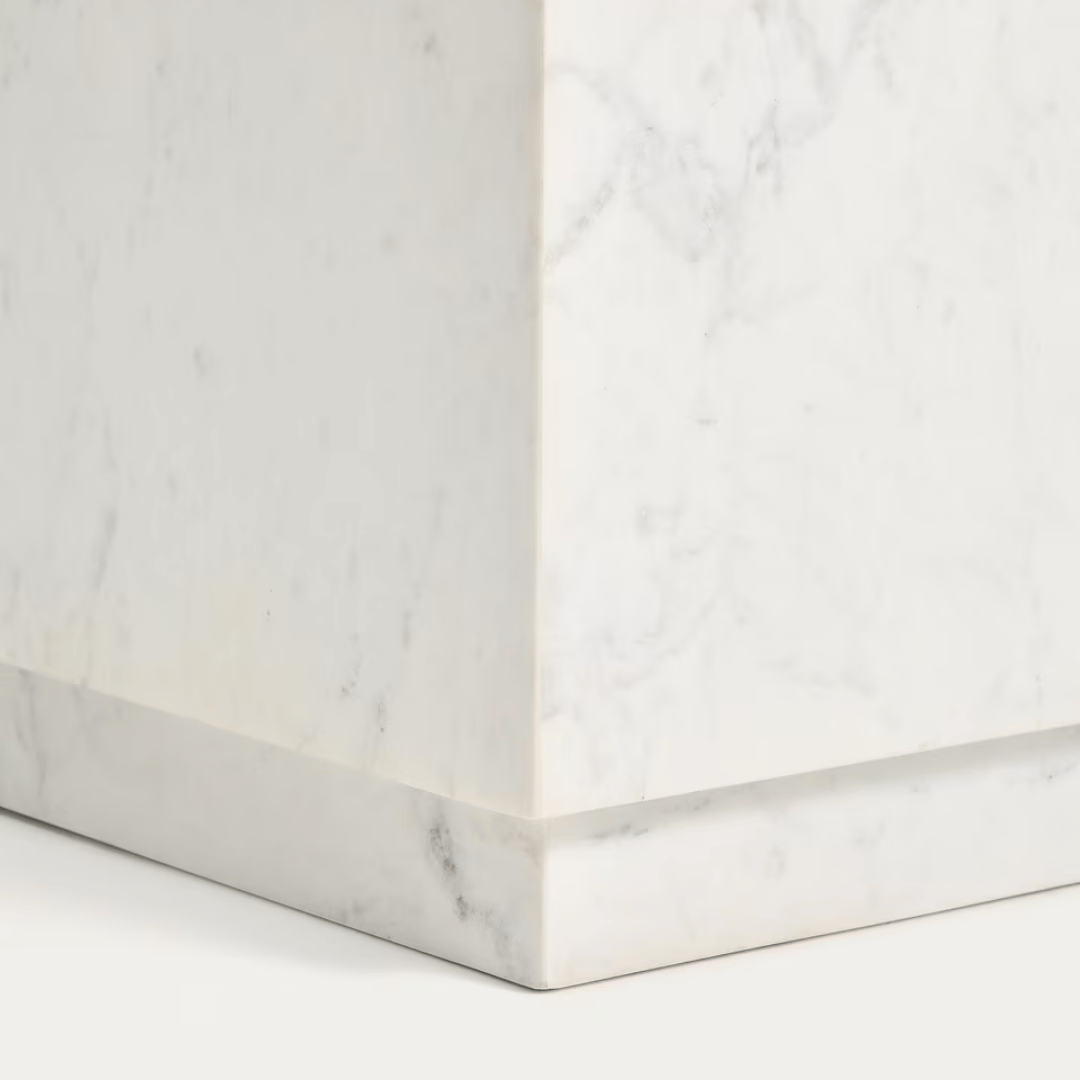 Welcome a modern and minimalist design to your space with the Sorein marble coffee table. Made of 15mm thick marble slabs, this durable side table will add a luxurious touch to your living space. The hollow interior lightens the weight and makes it easier to move from room to room. As marble is a natural product, variations are to be appreciated.