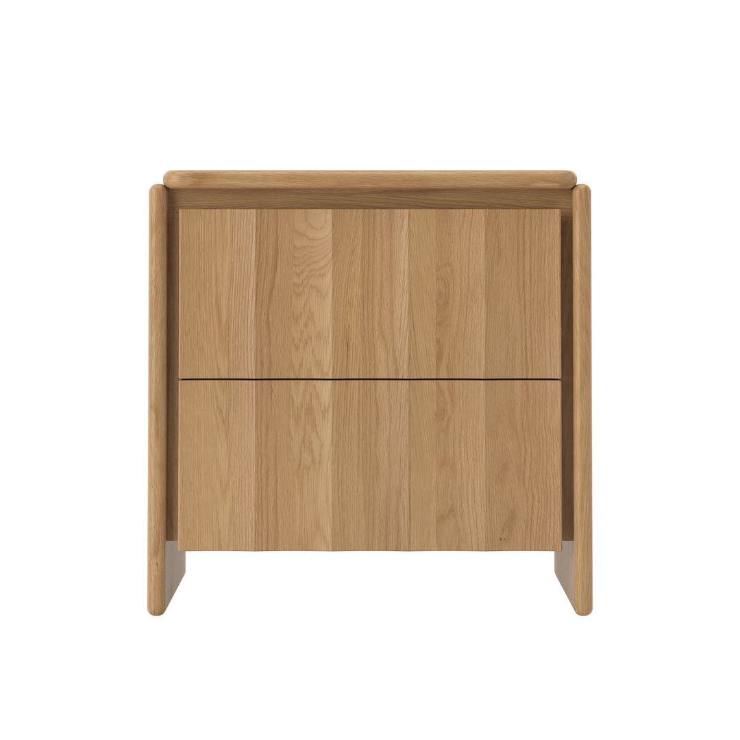 Welcome a natural and earthy design to your bedroom with the Stockholm bedside table. This sculptural bedside will add visual interest to any space, with the scalloped drawers and natural American Oak material. The balance of form and function makes it a versatile piece, whilst the soft-close drawers add a touch of luxury. As timber is a natural product, it is to be known that each piece will vary slightly in grain and colour.