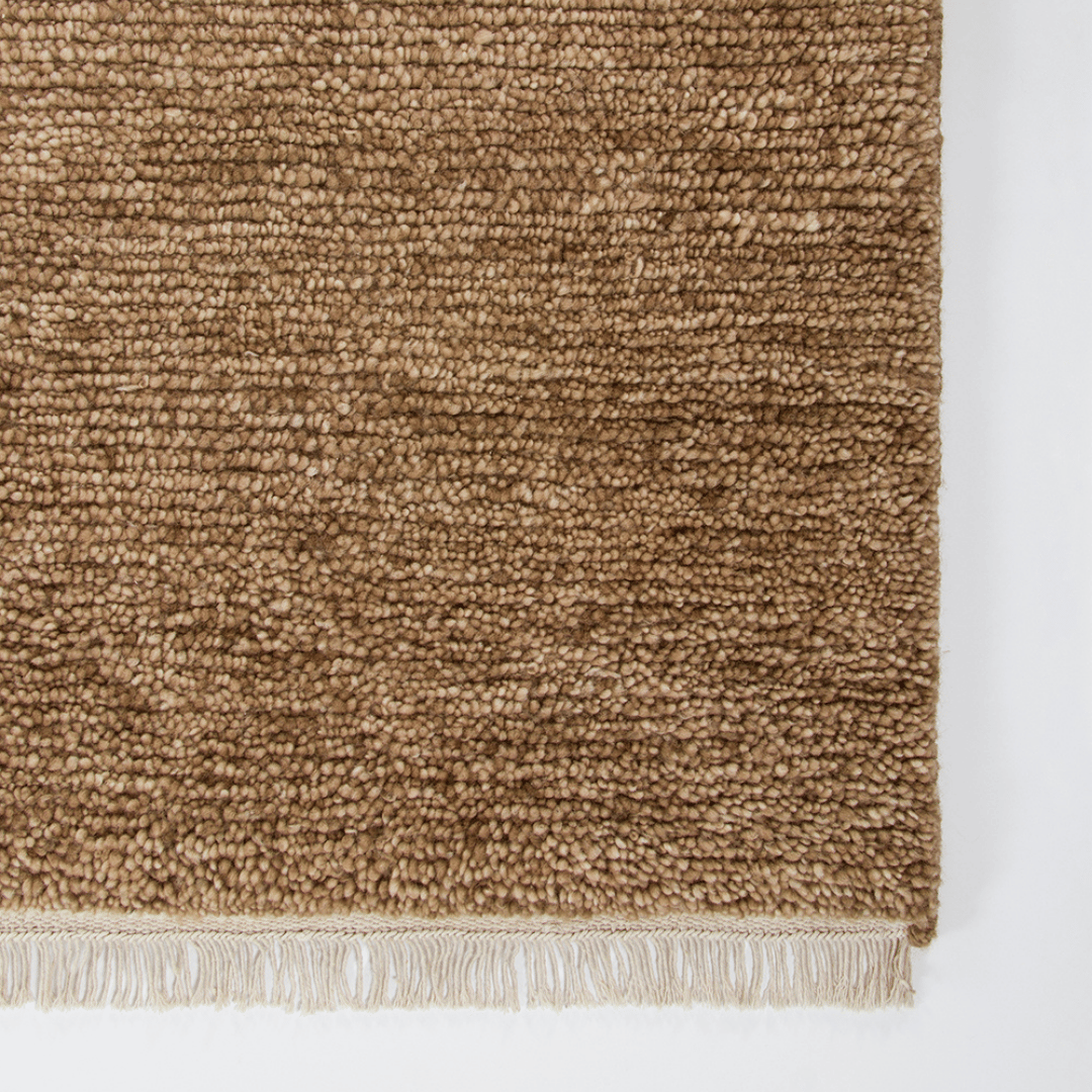 Create a tactical and sophisticated space with the Tanami floor rug. Available in a series of earthy tones, the Tanami rug will refine and complement your existing spaces, creating a warm and organic design. The dense pile is softened by the natural cotton fringe. Handcrafted from 100% New Zealand wool, and available in four rectangular sizes.