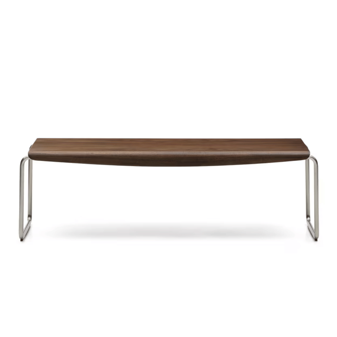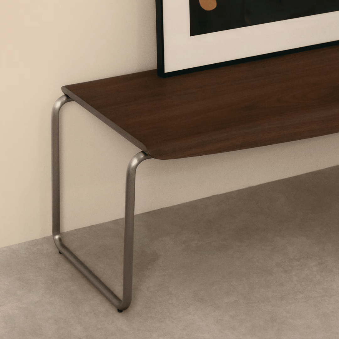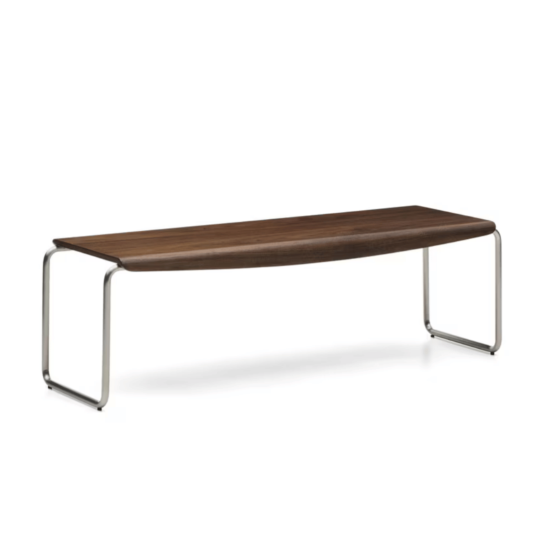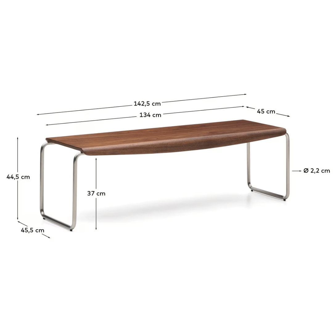 Introduce a timeless, mid-century elegance to your home with the Tarsel bench seat. Dark walnut and brushed chrome combine to create a visual synergy. Designed with versatility in mind, the Walnut top features a slightly curved edge that complements the minimalist design. Combine with any other piece from the Tarsel range for the ultimate retro look.
