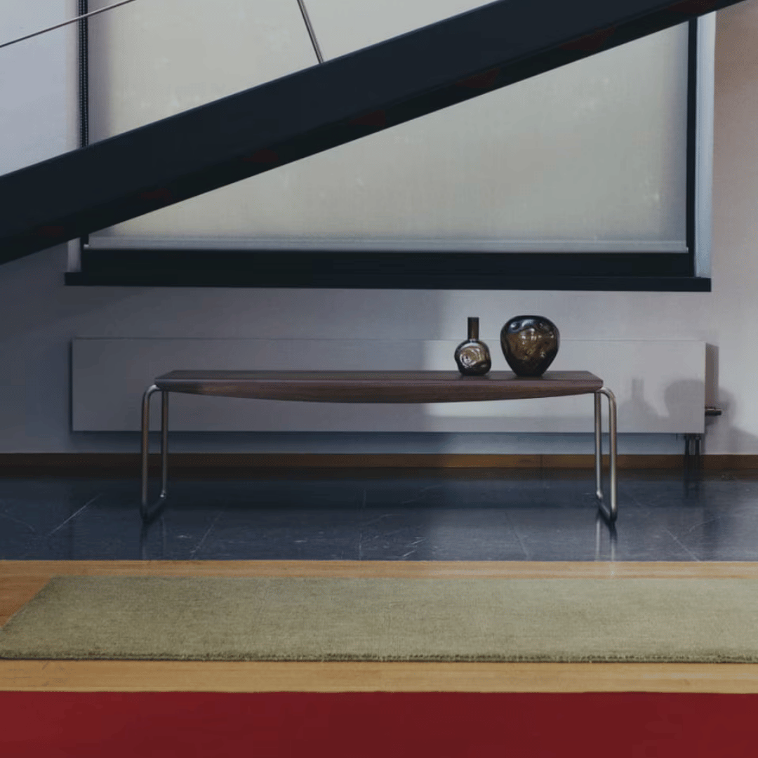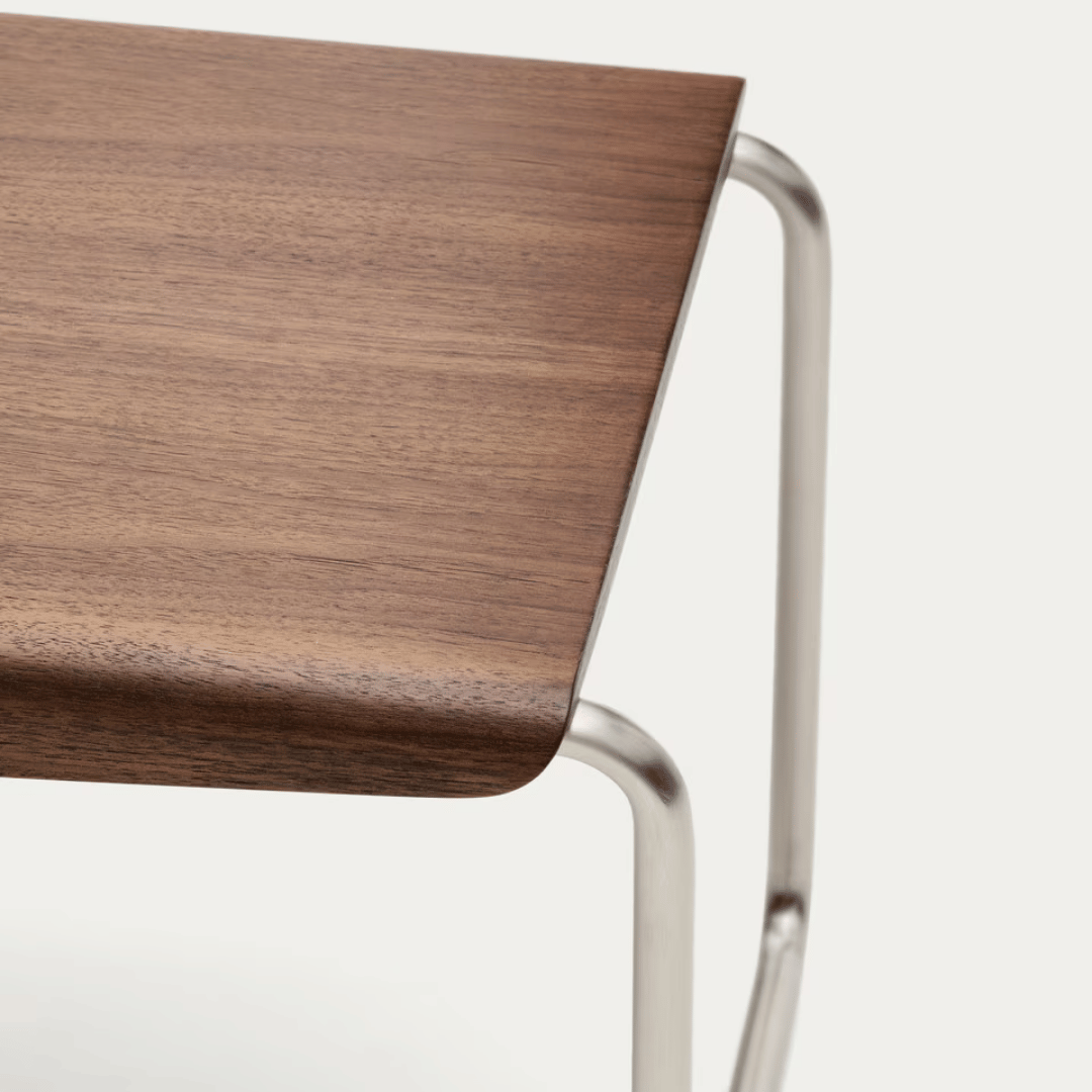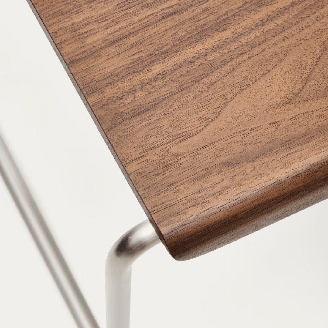 - Materials: Walnut veneer, brushed stainless steel, plywood