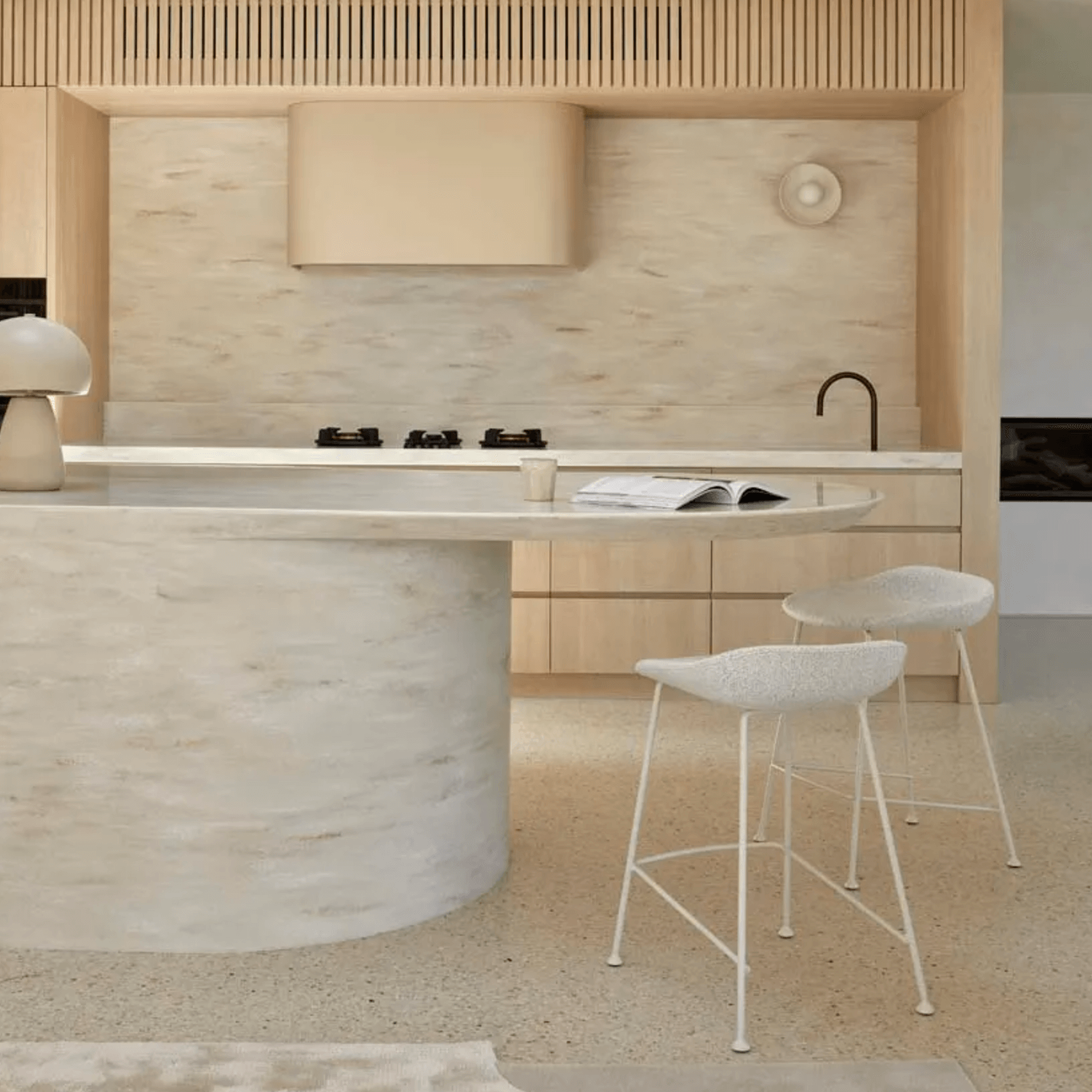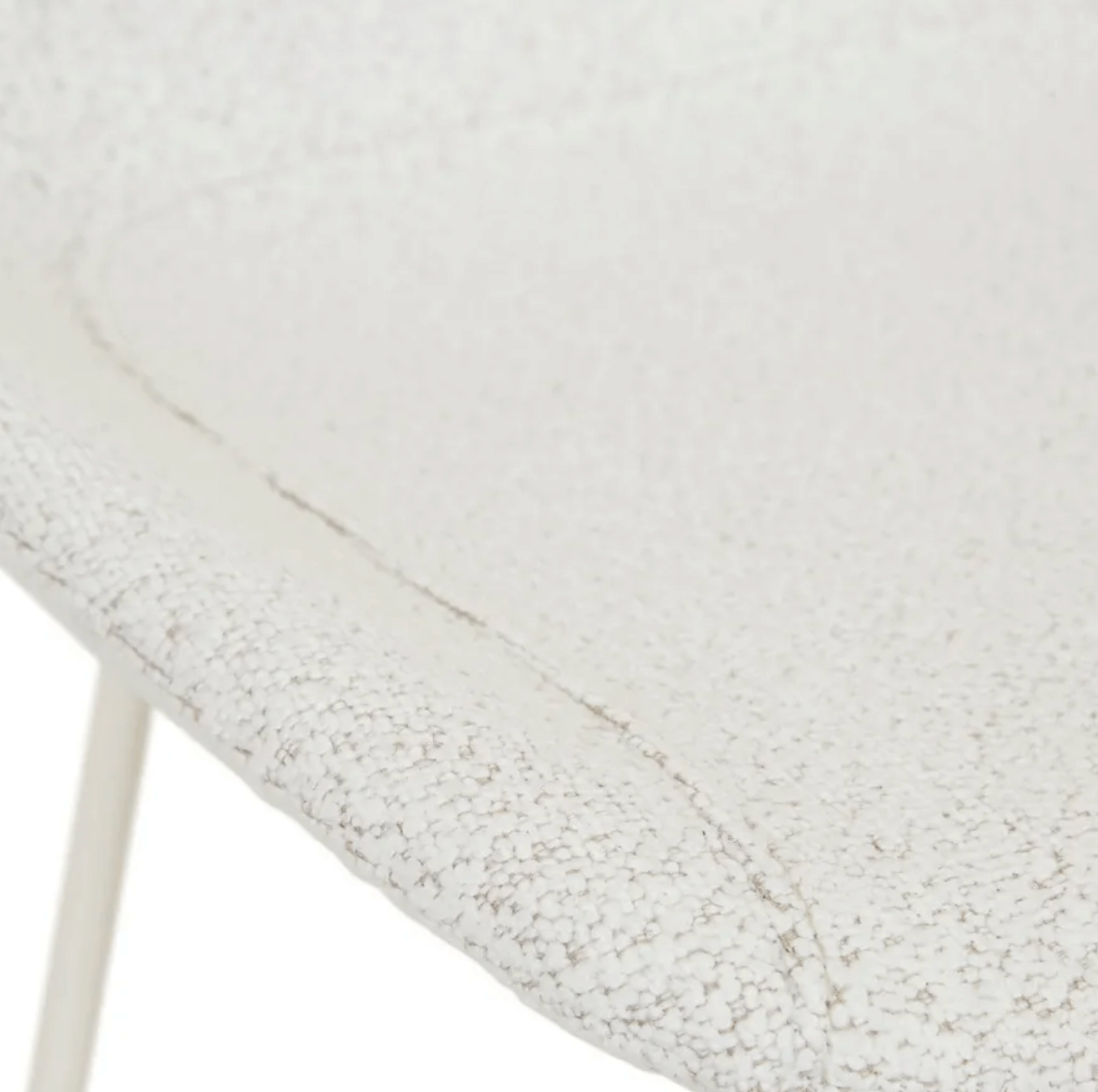 The slim Turner barstool has a versatile style that works beautifully with any island bench top. The low profile seat is comfortable and the slight curved back promotes an upright posture. Finished in a striking white boucle that is sure to stand out.